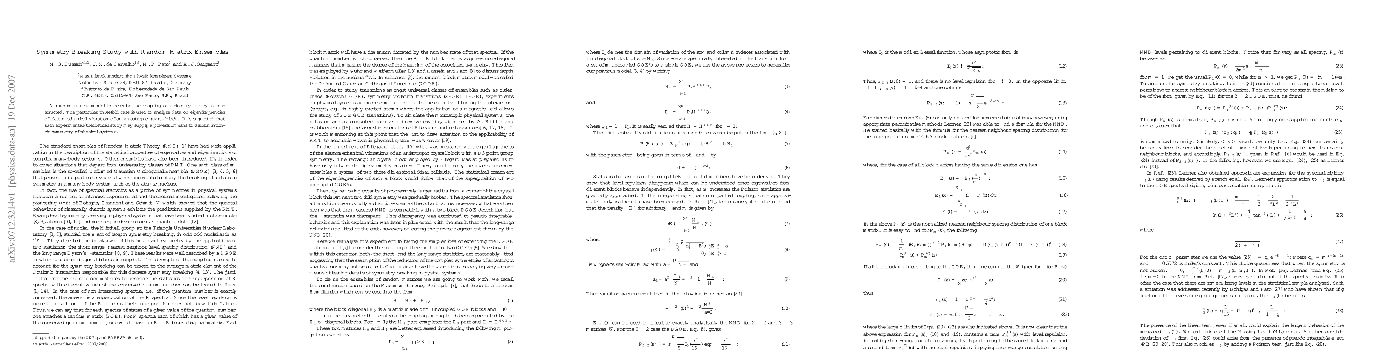 A random matrix model to describe the coupling of $m$-fold symmetry is constructed. The particular threefold case is used to analyze data on eigenfrequencies of elastomechanical vibration of an anisotropic quartz block. It is suggested that such experimental/theoretical study may supply a powerful means to discern intrinsic symmetry of physical systems.