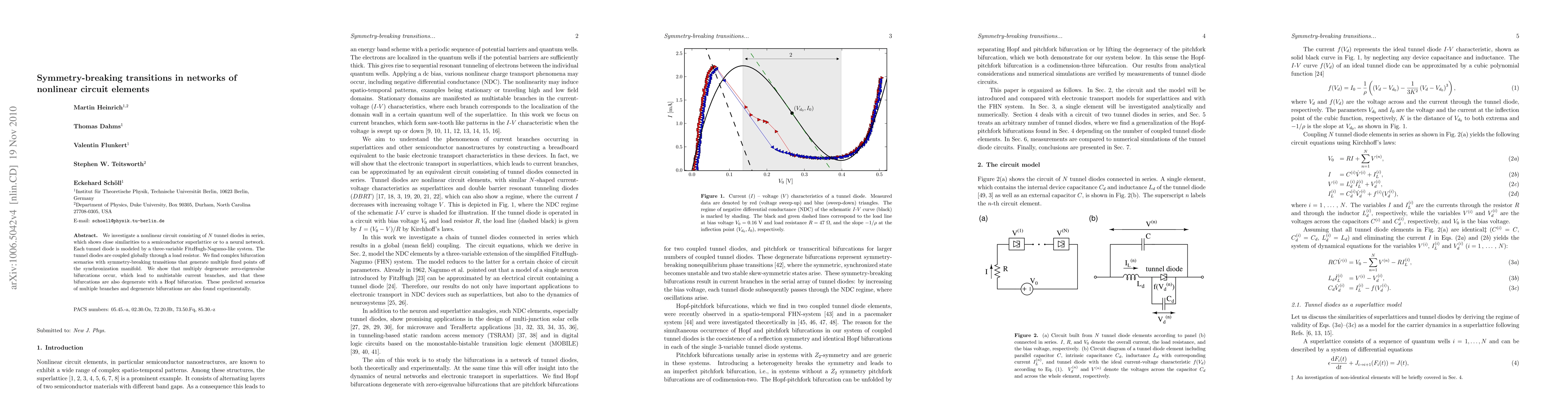 A nonlinear circuit with tunnel diodes exhibits complex symmetry-breaking transitions, generating multiple fixed points and multistable current branches, which were confirmed experimentally.