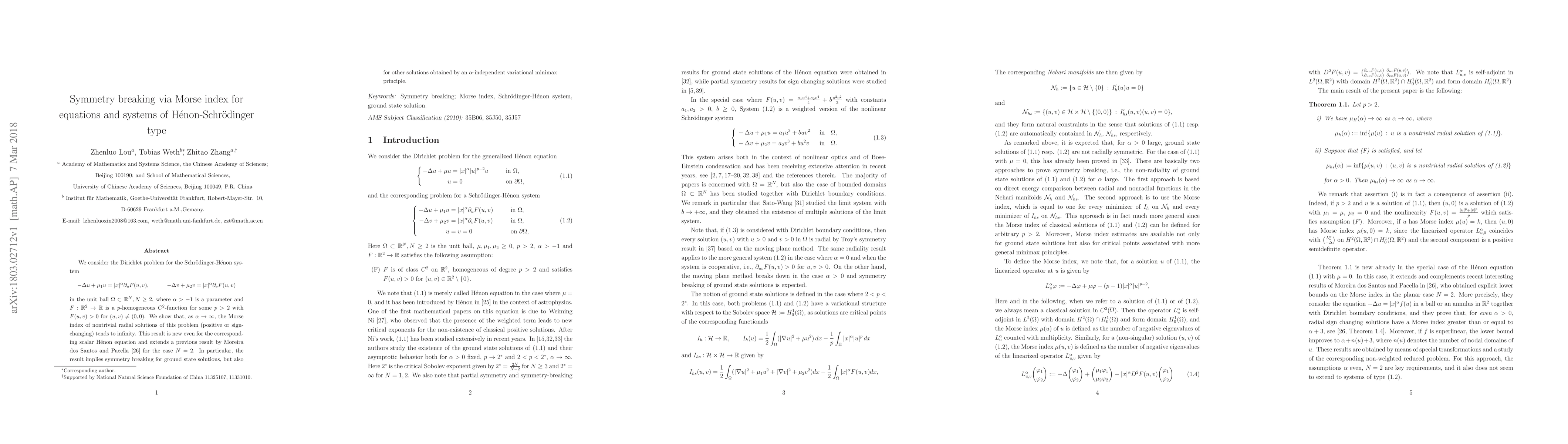 This research paper shows that as a parameter in the Hénogen-Schrödinger system increases, the number of solutions with certain properties grows infinitely, leading to symmetry breaking in the system's ground state solutions.