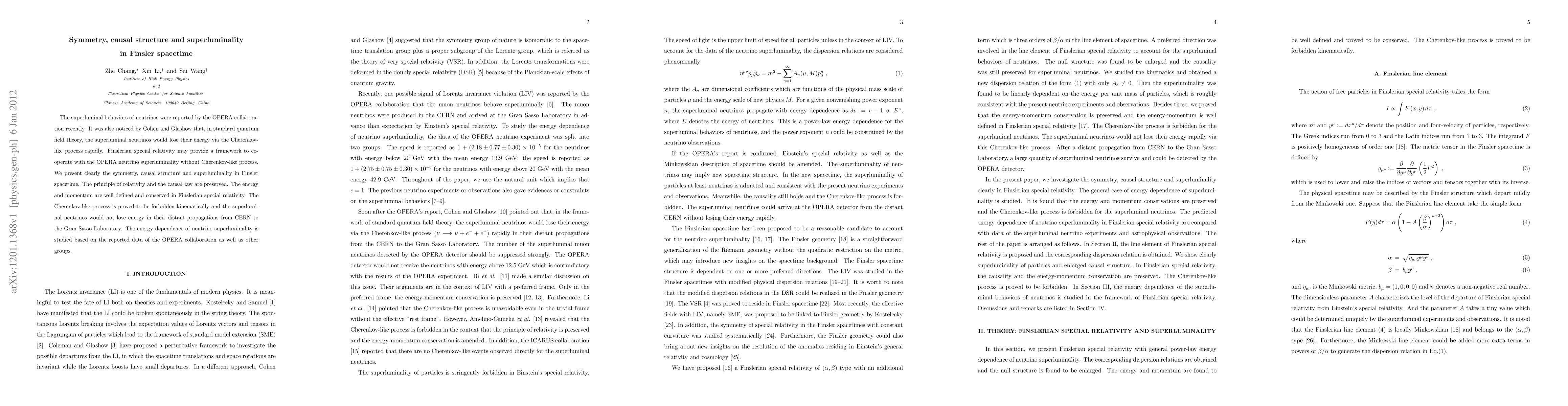 This paper explores how Finslerian special relativity can accommodate superluminal neutrino speeds observed by OPERA without invoking energy loss via Cherenkov-like processes, preserving the principle of relativity and causal structure while ensuring energy and momentum conservation.