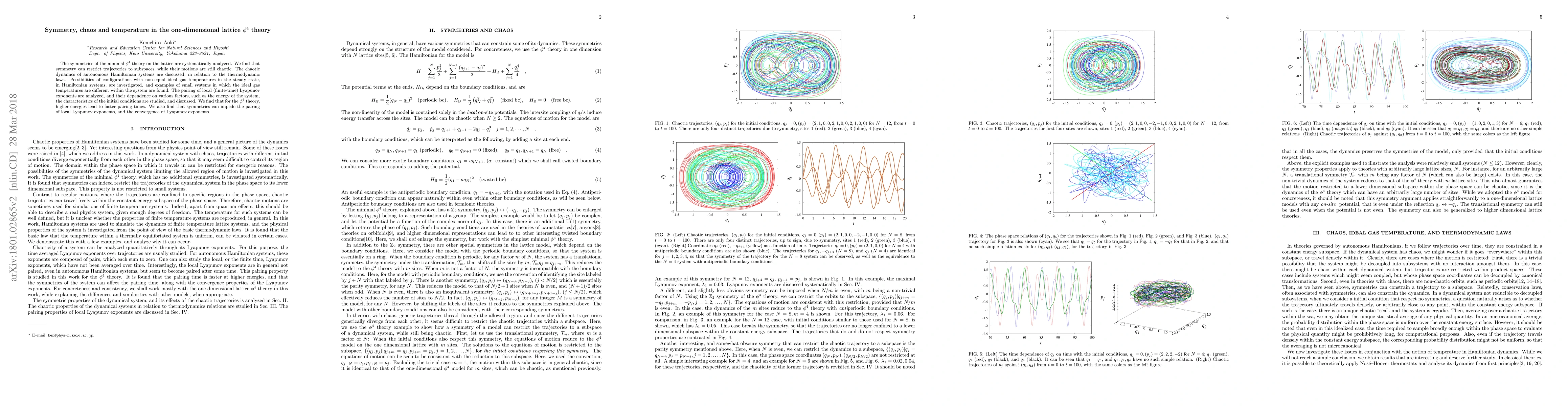 The symmetries of the minimal $\phi^4$ theory on the lattice are systematically analyzed. We find that symmetry can restrict trajectories to subspaces, while their motions are still chaotic. The chaotic dynamics of autonomous Hamiltonian systems are discussed, in relation to the thermodynamic laws. Possibilities of configurations with non-equal ideal gas temperatures in the steady state, in Hamiltonian systems, are investigated, and examples of small systems in which the ideal gas temperatures are different within the system are found. The pairing of local (finite-time) Lyapunov exponents are analyzed, and their dependence on various factors, such as the energy of the system, the characteristics of the initial conditions are studied, and discussed. We find that for the $\phi^4$ theory, higher energies lead to faster pairing times. We also find that symmetries can impede the pairing of local Lyapunov exponents, and the convergence of Lyapunov exponents.