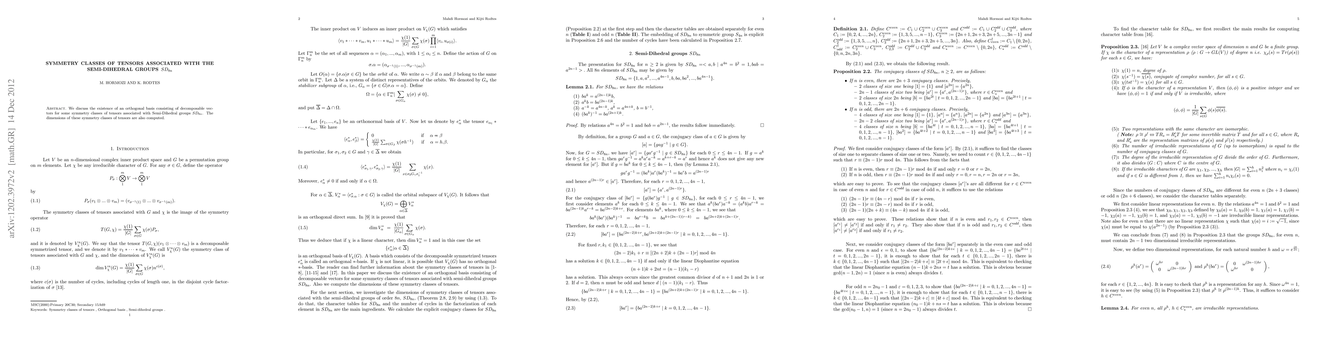 This paper explores the existence of an orthogonal basis for decomposable vectors in symmetry classes of tensors linked to the Semi-Dihedral groups $SD_{8n}$, and calculates the dimensions of these classes.