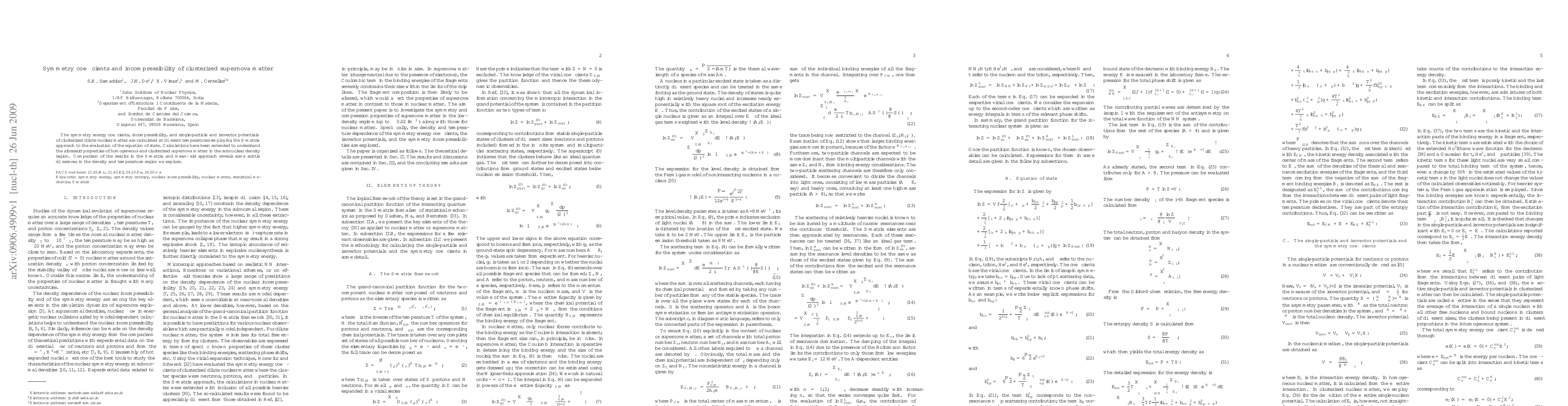 Researchers calculated symmetry energy coefficients and incompressibility of clusterized supernova matter at different temperatures using the S-matrix approach, revealing subtle differences with the mean-field approach.