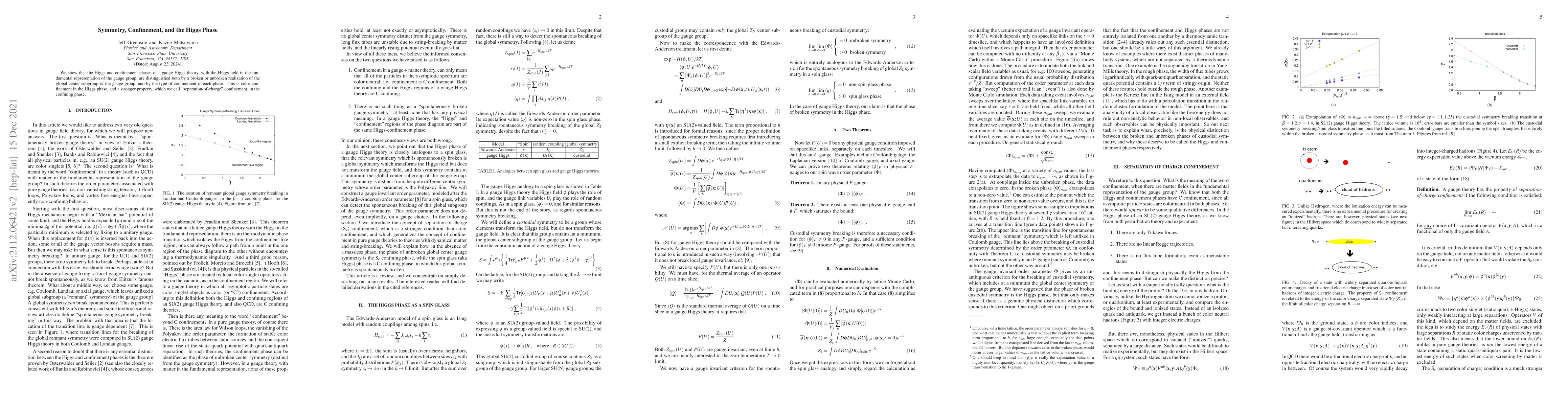 The paper distinguishes between the Higgs and confinement phases in gauge Higgs theory by the realization of the global center subgroup and the nature of confinement, identifying color confinement in the Higgs phase and a more stringent "separation-of-charge" confinement in the confining phase.