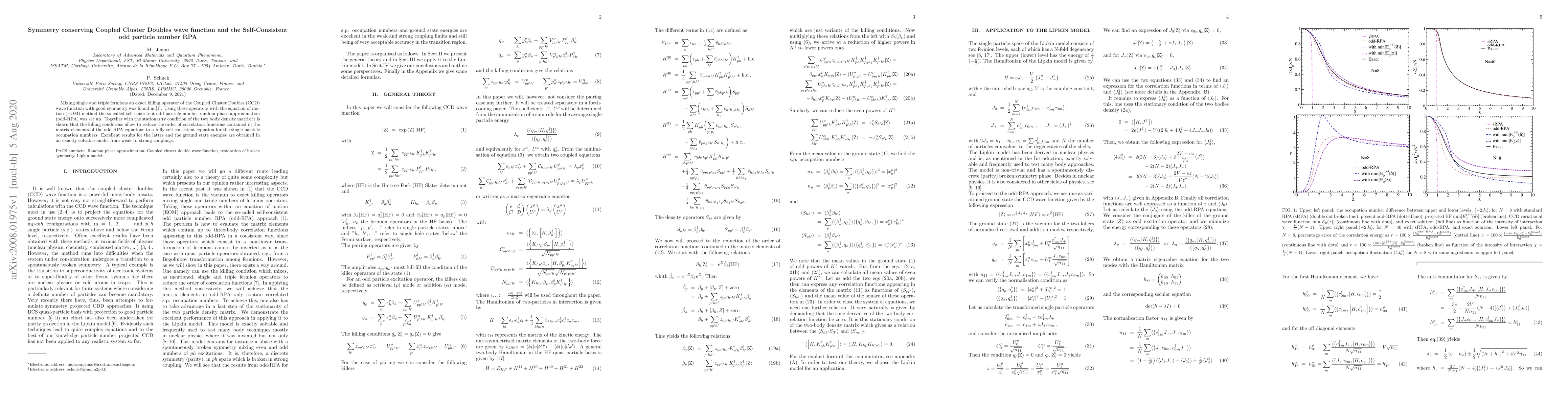 This paper introduces a symmetry conserving Coupled Cluster Doubles (CCD) wave function and develops the self-consistent odd particle number random phase approximation (odd-RPA). The method leverages exact killing operators to reduce the order of correlation functions, leading to accurate single-particle occupation numbers and ground state energies across various coupling strengths.