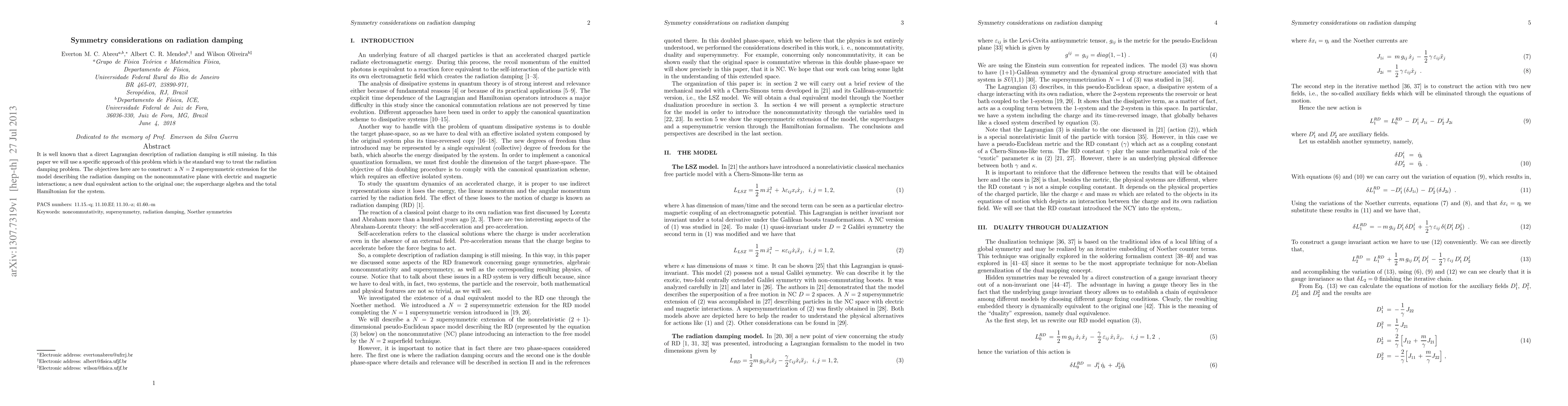 It is well known that a direct Lagrangian description of radiation damping is still missing. In this paper we will use a specific approach of this problem which is the standard way to treat the radiation damping problem. The objectives here are to construct: a N=2 supersymmetric extension for the model describing the radiation damping on the noncommutative plane with electric and magnetic interactions; a dualization analysis of the original action; the supercharge algebra and the total Hamiltonian for the system.