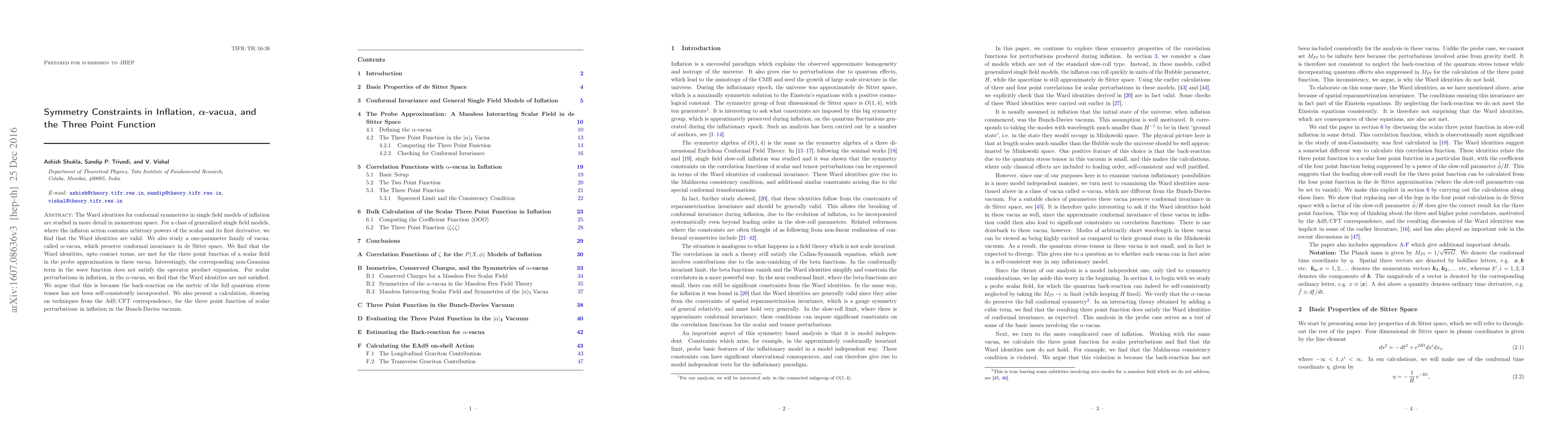 Researchers studied conformal symmetries in single field models of inflation, finding that Ward identities hold for a class of generalized models but not for $eta$-vacua, highlighting the need for self-consistent incorporation of back-reaction on the metric.