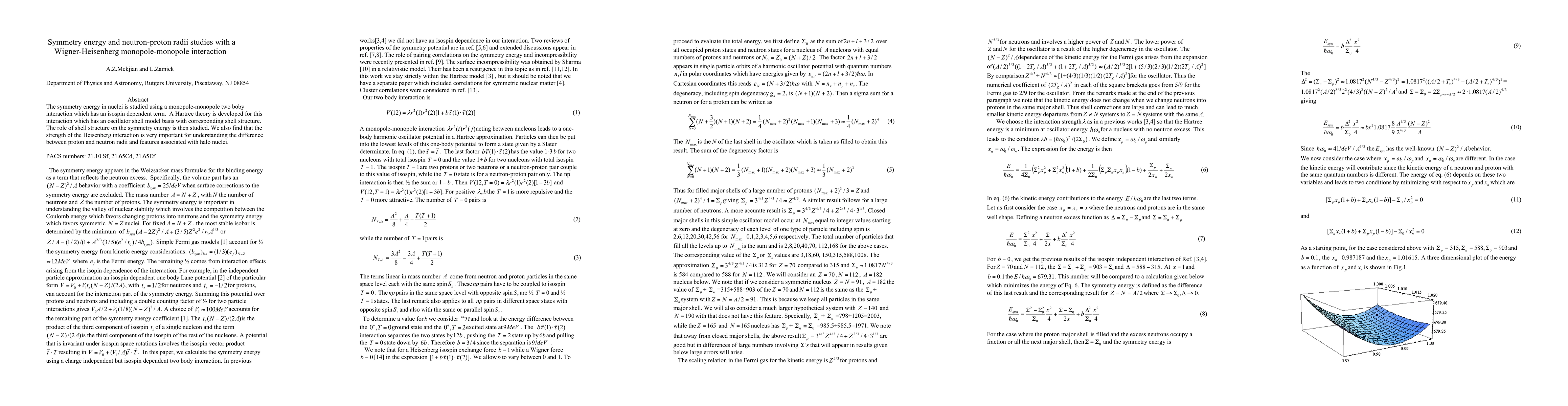 This paper investigates the symmetry energy in nuclei using a monopole-monopole interaction with an isospin-dependent term and develops a Hartree theory based on an oscillator shell model. The study highlights the significance of shell structure on symmetry energy and the role of Heisenberg interaction strength in differentiating neutron and proton radii, particularly in halo nuclei.