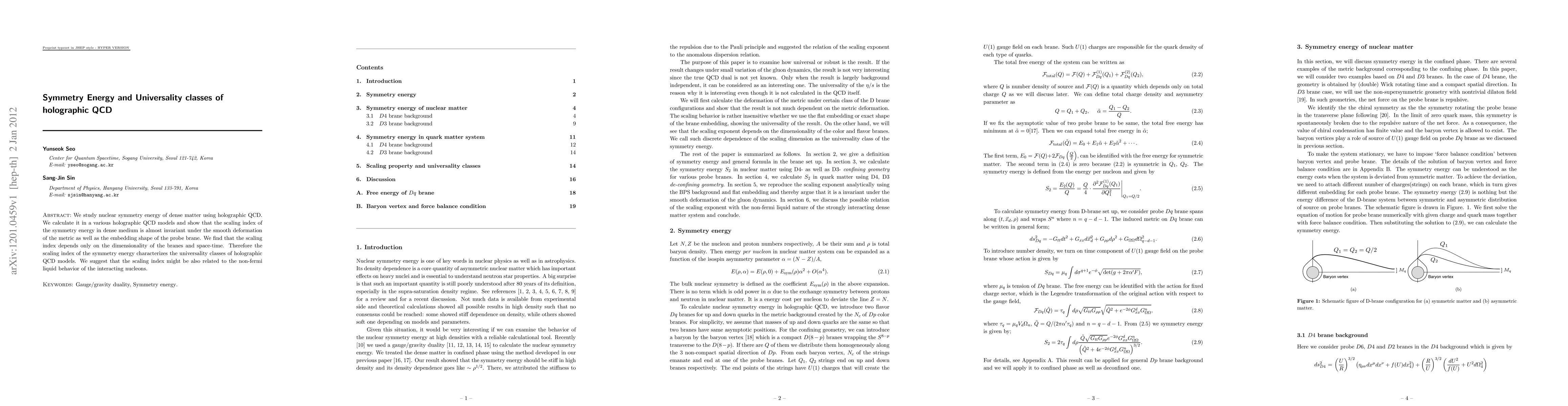 Researchers used holographic QCD to calculate nuclear symmetry energy in dense matter and found that its scaling index is invariant under different models, indicating universality classes.