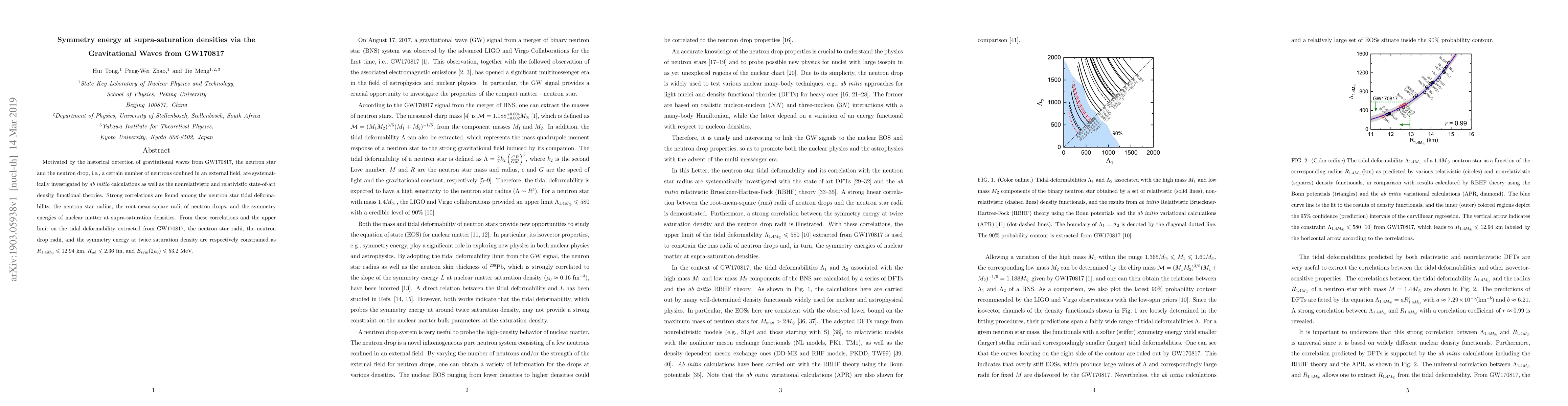 The paper presents a comprehensive analysis combining ab initio calculations, DFTs, and RBHF theory to extract information on neutron star properties and symmetry energy from GW170817 data.