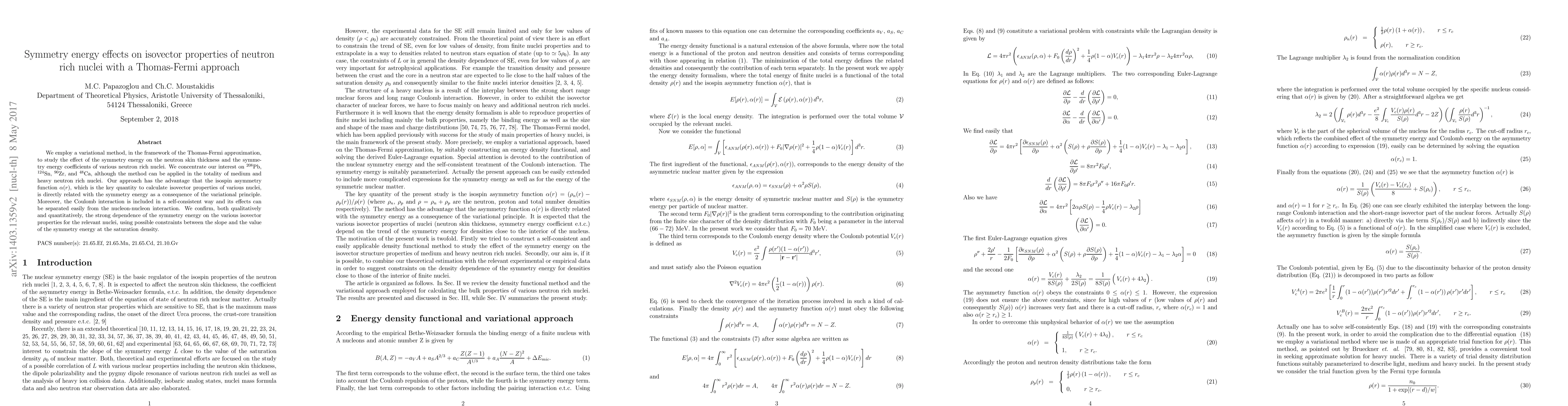 We employ a variational method, in the framework of the Thomas-Fermi approximation, to study the effect of the symmetry energy on the neutron skin thickness and the symmetry energy coefficients of various neutron rich nuclei. We concentrate our interest on $^{208}$Pb, $^{124}$Sn, $^{90}$Zr, and $^{48}$Ca, although the method can be applied in the totality of medium and heavy neutron rich nuclei. Our approach has the advantage that the isospin asymmetry function $\alpha(r)$, which is the key quantity to calculate isovector properties of various nuclei, is directly related with the symmetry energy as a consequence of the variational principle. Moreover, the Coulomb interaction is included in a self-consistent way and its effects can be separated easily from the nucleon-nucleon interaction. We confirm, both qualitatively and quantitatively, the strong dependence of the symmetry energy on the various isovector properties for the relevant nuclei, using possible constraints between the slope and the value of the symmetry energy at the saturation density.