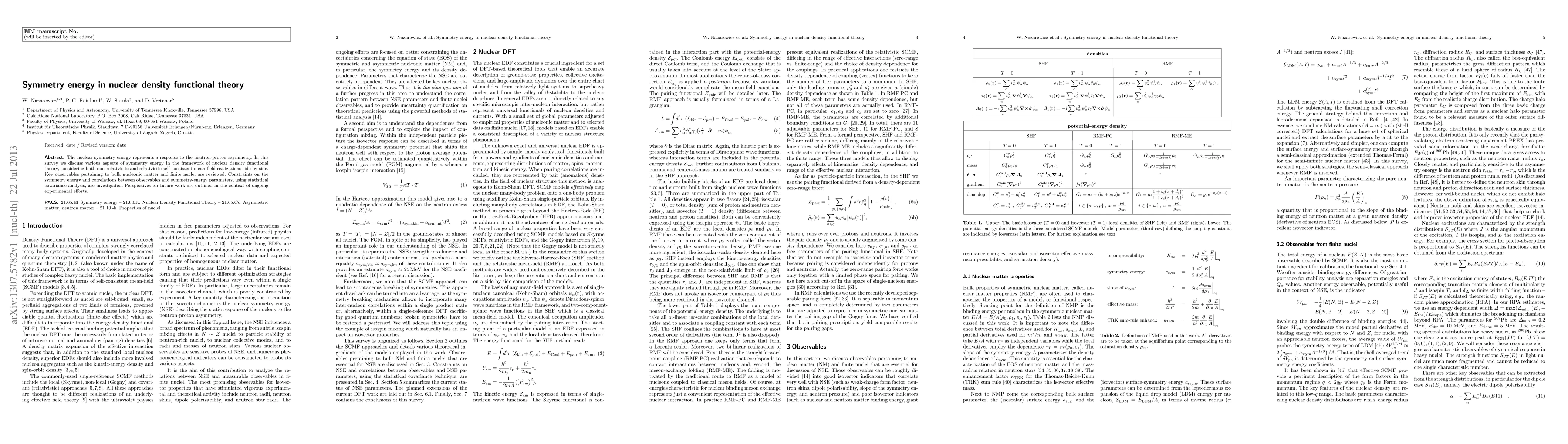 This paper reviews the nuclear symmetry energy within nuclear density functional theory, comparing non-relativistic and relativistic approaches, and discusses constraints and correlations derived from statistical analysis, with an outlook on future experimental investigations.
