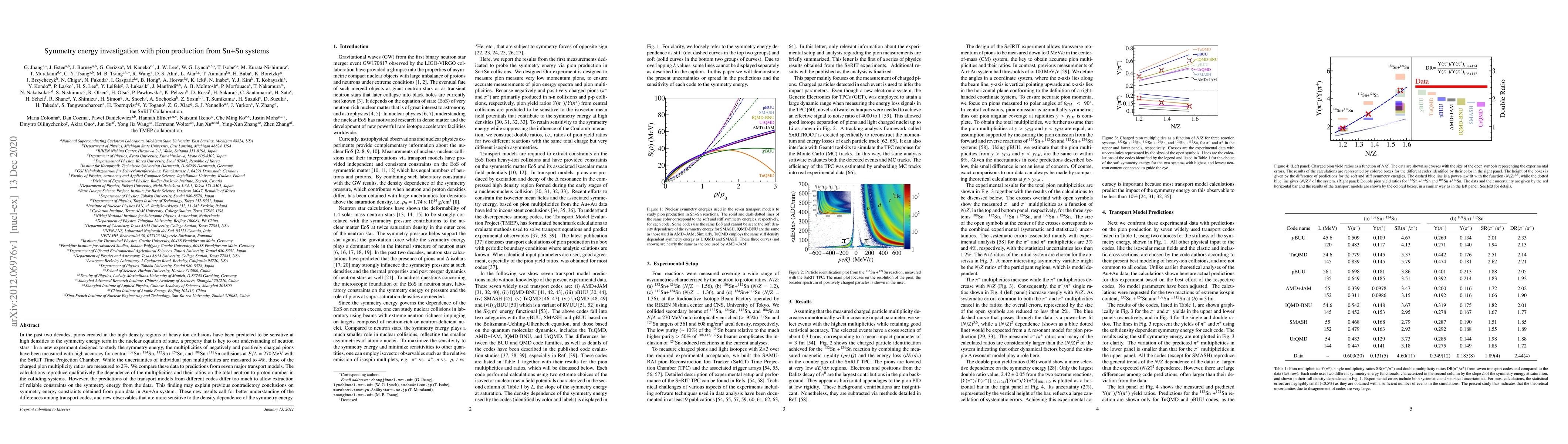 In the past two decades, pions created in the high density regions of heavy ion collisions have been predicted to be sensitive at high densities to the symmetry energy term in the nuclear equation of state, a property that is key to our understanding of neutron stars. In a new experiment designed to study the symmetry energy, the multiplicities of negatively and positively charged pions have been measured with high accuracy for central $^{132}$Sn+$^{124}$Sn, $^{112}$Sn+$^{124}$Sn, and $^{108}$Sn+$^{112}$Sn collisions at $E/A=270~\mathrm{MeV}$ with the S$\pi$RIT Time Projection Chamber. While the uncertainties of individual pion multiplicities are measured to 4\%, those of the charged pion multiplicity ratios are measured to 2\%. We compare these data to predictions from seven major transport models. The calculations reproduce qualitatively the dependence of the multiplicities and their ratios on the total neutron to proton number in the colliding systems. However, the predictions of the transport models from different codes differ too much to allow extraction of reliable constraints on the symmetry energy from the data. This finding may explain previous contradictory conclusions on symmetry energy constraints obtained from pion data in Au+Au system. These new results call for better understanding of the differences among transport codes, and new observables that are more sensitive to the density dependence of the symmetry energy.
