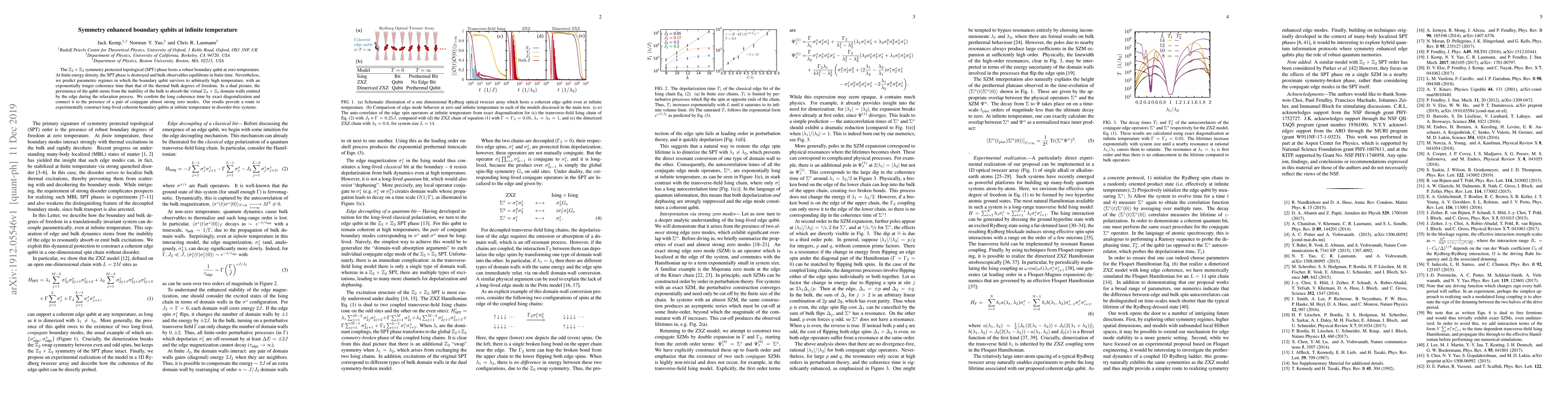 The $\mathbb{Z}_2 \times \mathbb{Z}_2$ symmetry protected topological (SPT) phase hosts a robust boundary qubit at zero temperature. At finite energy density, the SPT phase is destroyed and bulk observables equilibrate in finite time. Nevertheless, we predict parametric regimes in which the boundary qubit survives to arbitrarily high temperature, with an exponentially longer coherence time than that of the thermal bulk degrees of freedom. In a dual picture, the persistence of the qubit stems from the inability of the bulk to absorb the virtual $\mathbb{Z}_2 \times \mathbb{Z}_2$ domain walls emitted by the edge during the relaxation process. We confirm the long coherence time by exact diagonalization and connect it to the presence of a pair of conjugate almost strong zero modes. Our results provide a route to experimentally construct long-lived coherent boundary qubits at infinite temperature in disorder-free systems.