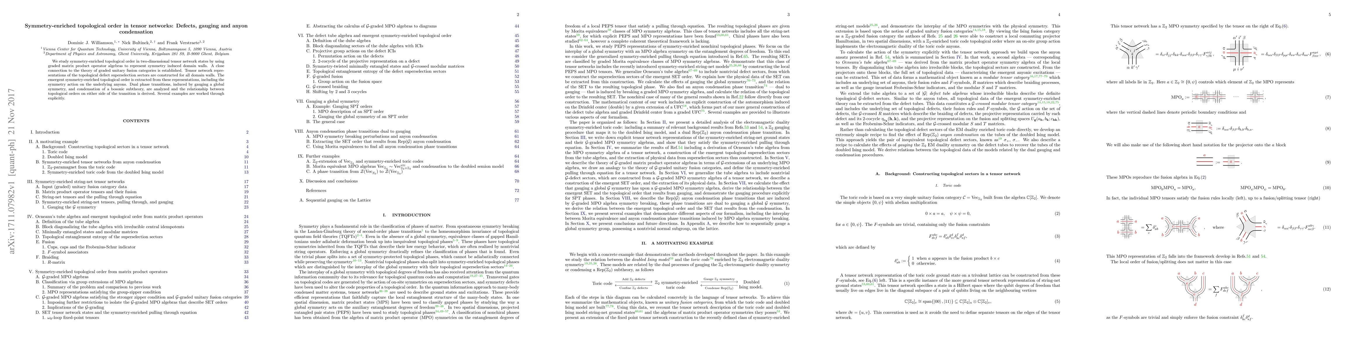 This paper explores symmetry-enriched topological order in two-dimensional tensor network states using graded matrix product operators to represent symmetry-induced domain walls. It establishes a connection to graded unitary fusion categories and constructs tensor network representations for topological defect superselection sectors, analyzing dual phase transitions and anyon condensation.