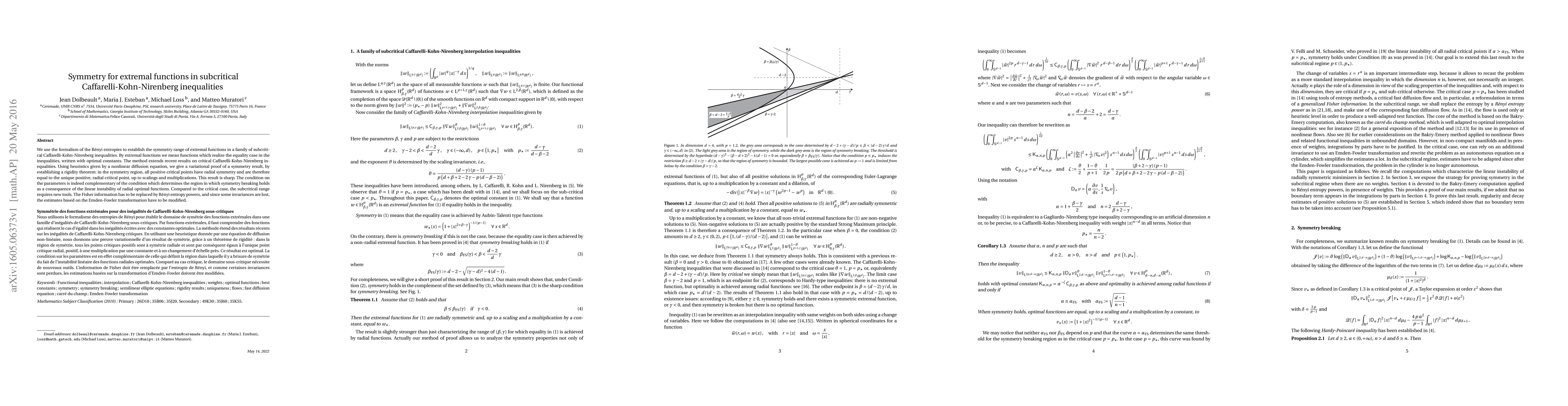 This research establishes the symmetry range of extremal functions for subcritical Caffarelli-Kohn-Nirenberg inequalities using Rényi entropies, proving that all positive critical points in the symmetry region are radially symmetric and equivalent up to scalings and multiplications. The method involves a variational proof and introduces new tools, replacing Fisher information with Rényi entropy powers due to lost invariances.