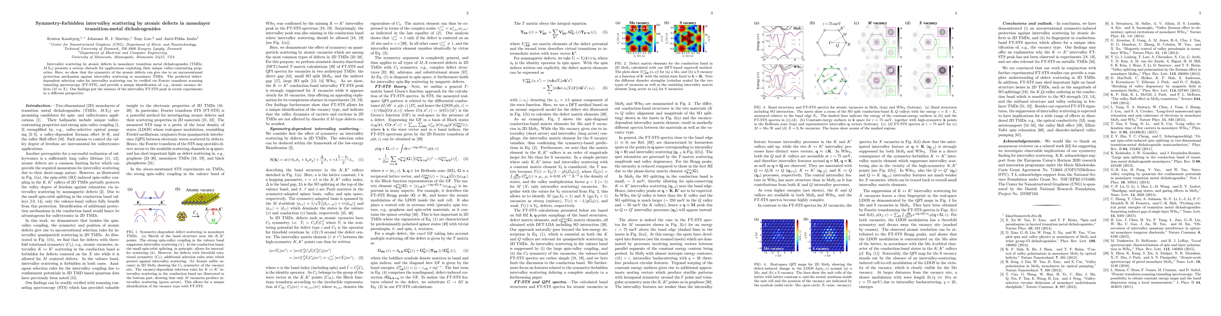 This paper demonstrates that atomic defects in monolayer transition metal dichalcogenides can protect against symmetry-forbidden intervalley scattering, offering a novel mechanism for maintaining valley-contrasting properties. The study verifies these defect-dependent selection rules using Fourier transform scanning tunneling spectroscopy, providing a new way to identify specific atomic defects.