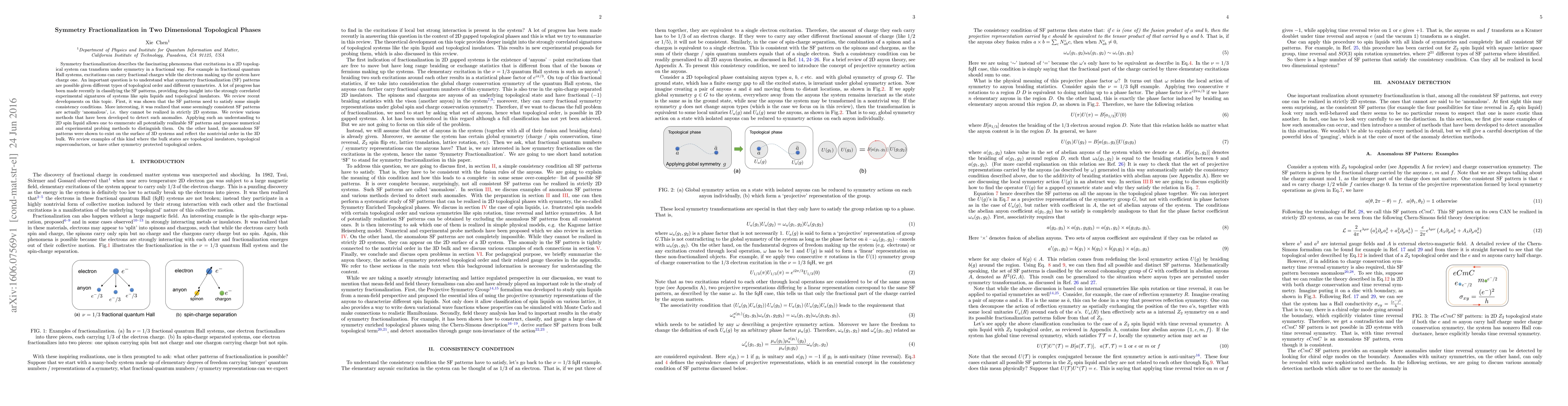 This paper reviews recent advancements in understanding symmetry fractionalization in 2D topological phases, focusing on how excitations can carry fractional charges despite whole electrons having integer charges. It highlights methods for detecting anomalous fractionalization patterns and discusses their implications in 2D spin liquids and the existence of such anomalies on the surfaces of 3D topologically ordered systems.