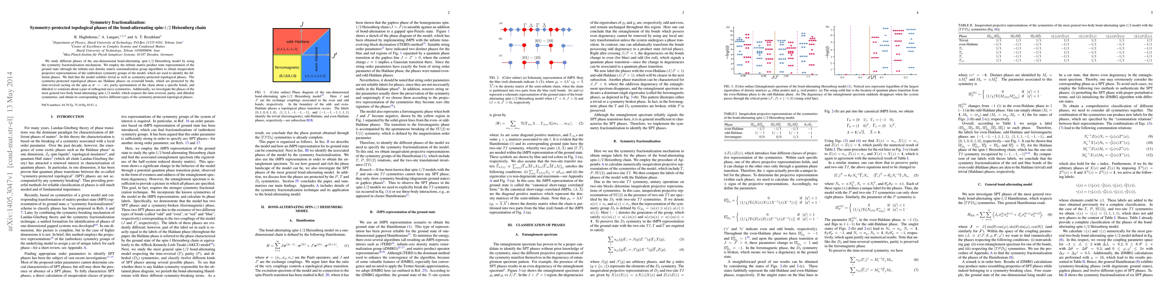 This paper explores the phases of the bond-alternating spin-$1/2$ Heisenberg chain using symmetry fractionalization and identifies trivial and symmetry-protected topological phases, including Haldane phases, protected by time-reversal, parity, and dihedral symmetries. The study extends to general two-body models, revealing twelve distinct symmetry-protected topological phases.