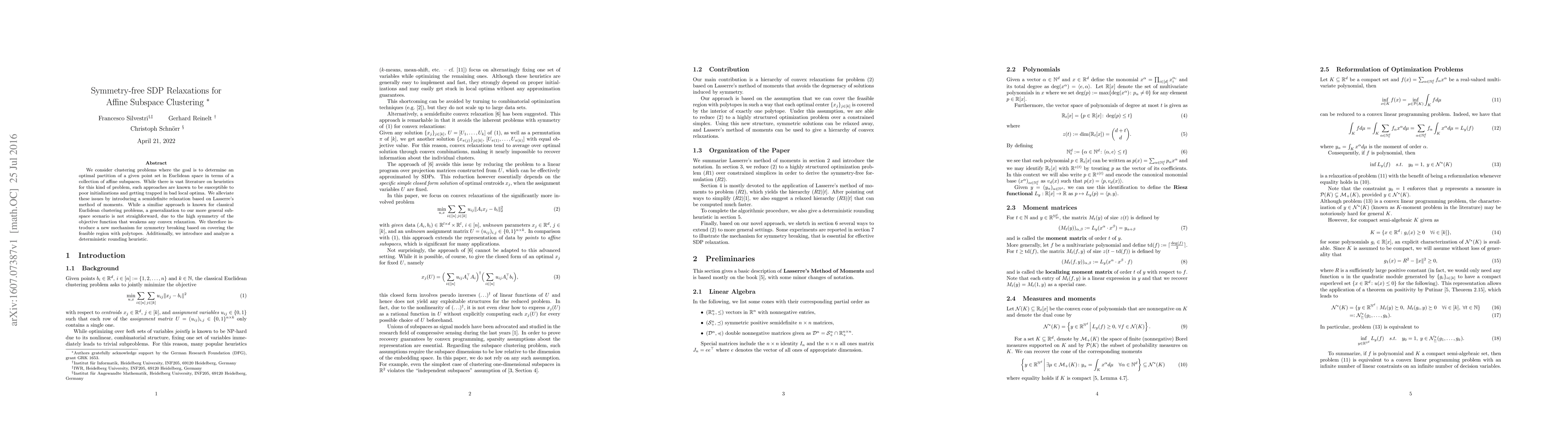This paper proposes a symmetry-free semidefinite programming (SDP) relaxation for affine subspace clustering, addressing the challenges of symmetry in objective functions. It introduces a novel symmetry-breaking mechanism using polytopes and a deterministic rounding heuristic to improve clustering accuracy.