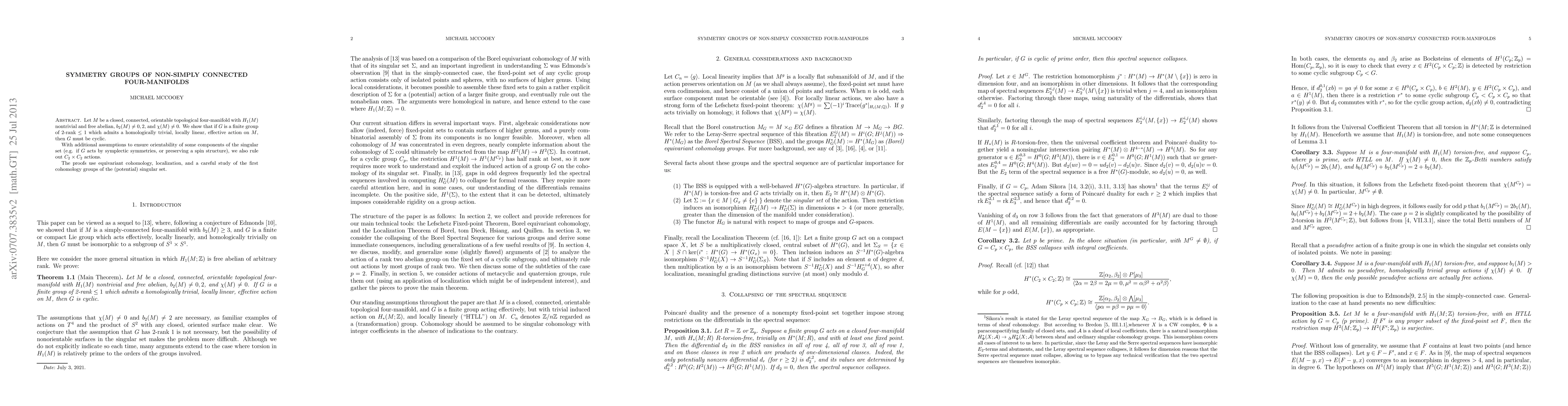 Let $M$ be a closed, connected, orientable topological four-manifold with $H_1(M)$ nontrivial and free abelian, $b_2(M)\ne 0, 2$, and $\chi(M)\ne 0$. We show that if $G$ is a finite group of 2-rank $\le 1$ which admits a homologically trivial, locally linear, effective action on $M$, then $G$ must be cyclic. With additional assumptions to ensure orientability of some components of the singular set (e.g. if $G$ acts by symplectic symmetries, or preserving a spin structure), we also rule out $C_2 \times C_2$ actions. The proofs use equivariant cohomology, localization, and a careful study of the first cohomology groups of the (potential) singular set.