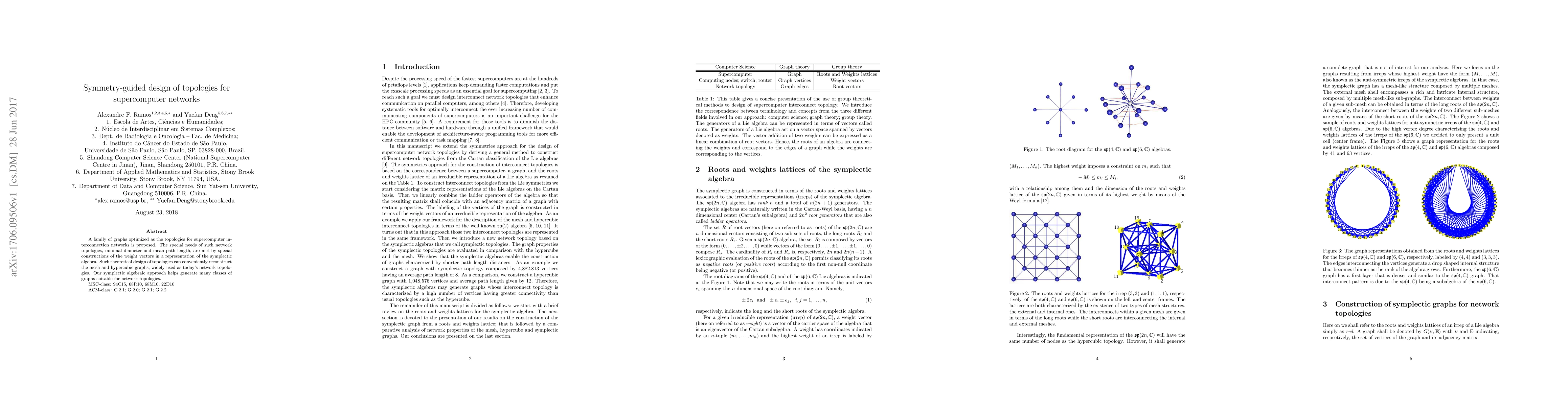 A family of graphs optimized as the topologies for supercomputer interconnection networks is proposed. The special needs of such network topologies, minimal diameter and mean path length, are met by special constructions of the weight vectors in a representation of the symplectic algebra. Such theoretical design of topologies can conveniently reconstruct the mesh and hypercubic graphs, widely used as today's network topologies. Our symplectic algebraic approach helps generate many classes of graphs suitable for network topologies.