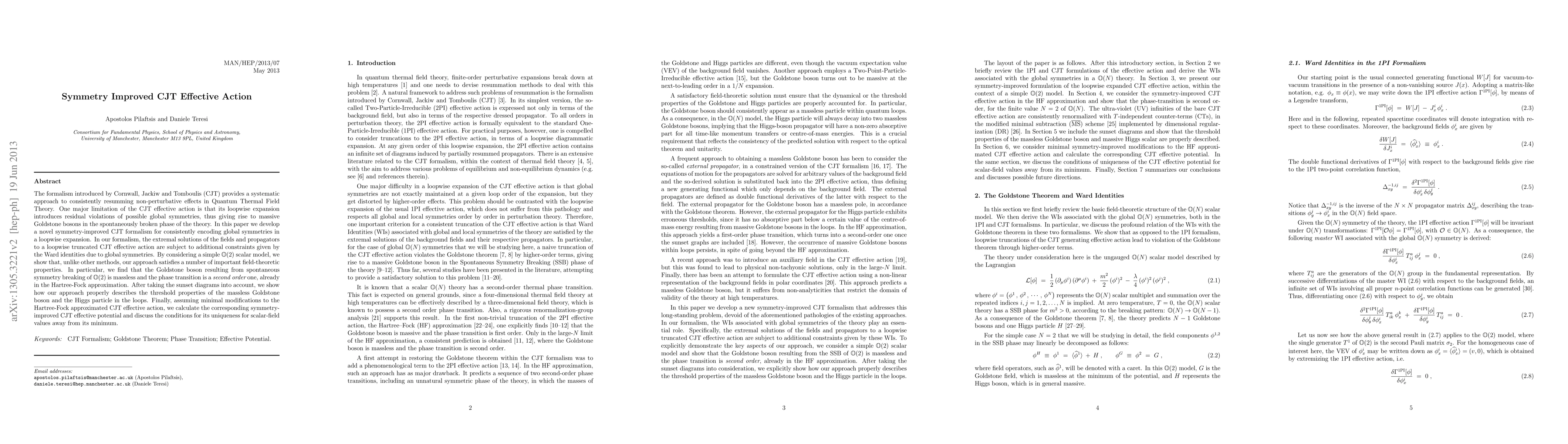 This paper introduces a new symmetry-improved version of the CJT effective action to address residual symmetry violations in loopwise expansions, ensuring the correct behavior of Goldstone bosons in spontaneously broken phases. The proposed method, demonstrated through an O(2) scalar model, correctly predicts massless Goldstone bosons and second-order phase transitions, and accurately describes the threshold properties of the Higgs particle in loops.