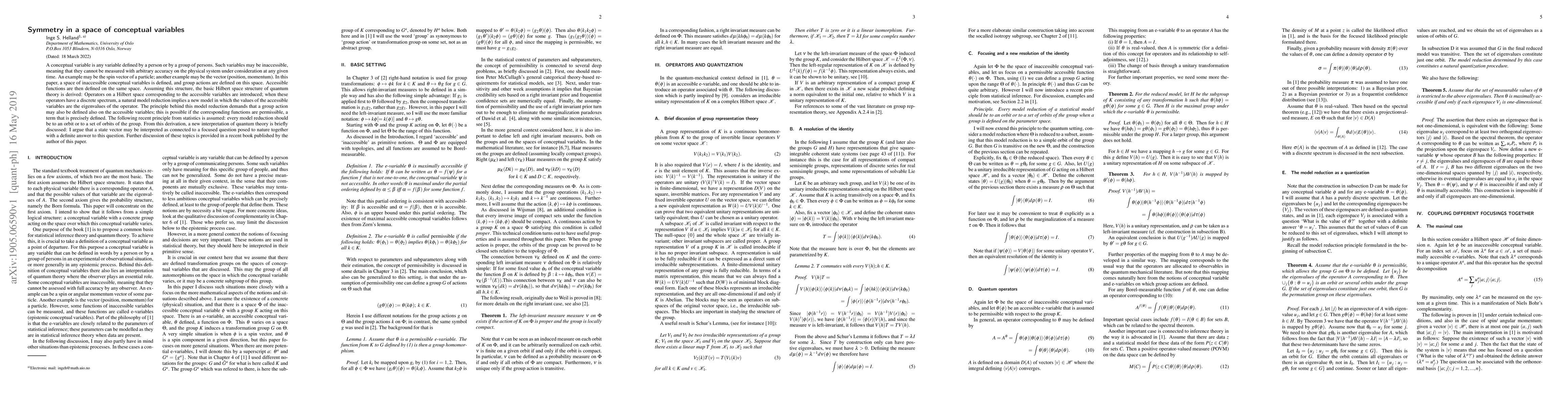 A conceptual variable is any variable defined by a person or by a group of persons. Such variables may be inaccessible, meaning that they cannot be measured with arbitrary accuracy on the physical system under consideration at any given time. An example may be the spin vector of a particle; another example may be the vector (position, momentum). In this paper, a space of inaccessible conceptual variables is defined, and group actions are defined on this space. Accessible functions are then defined on the same space. Assuming this structure, the basic Hilbert space structure of quantum theory is derived: Operators on a Hilbert space corresponding to the accessible variables are introduced; when these operators have a discrete spectrum, a natural model reduction implies a new model in which the values of the accessible variables are the eigenvalues of the operator. The principle behind this model reduction demands that a group action may also be defined also on the accessible variables; this is possible if the corresponding functions are permissible, a term that is precisely defined. The following recent principle from statistics is assumed: every model reduction should be to an orbit or to a set of orbits of the group. From this derivation, a new interpretation of quantum theory is briefly discussed: I argue that a state vector may be interpreted as connected to a focused question posed to nature together with a definite answer to this question. Further discussion of these topics is provided in a recent book published by the author of this paper.