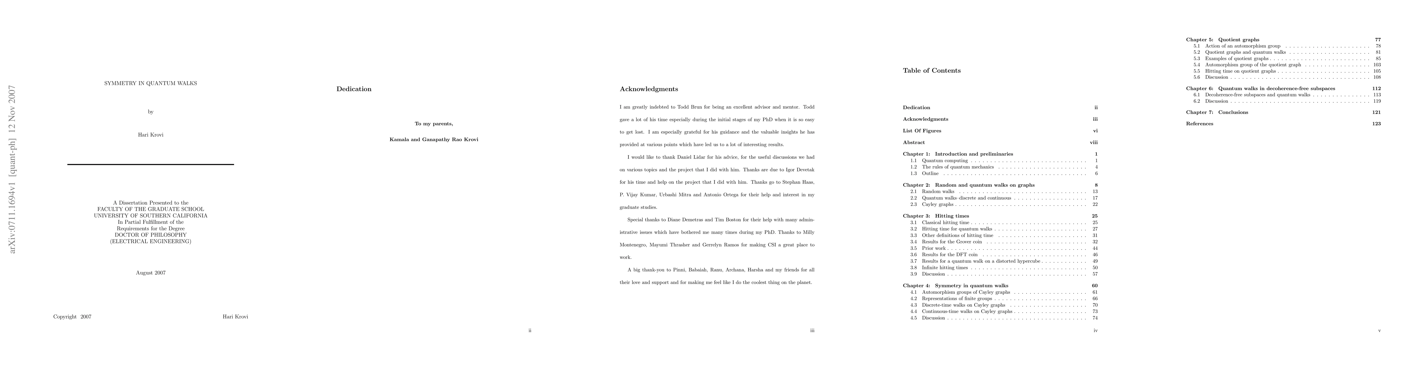This paper explores the impact of symmetry in quantum walks on graphs, deriving expressions for hitting times and identifying conditions under which quantum walks exhibit infinite hitting times. It reveals that symmetry, through the graph's automorphism group, can lead to quantum walks being confined to subspaces, effectively transforming into walks on smaller quotient graphs.