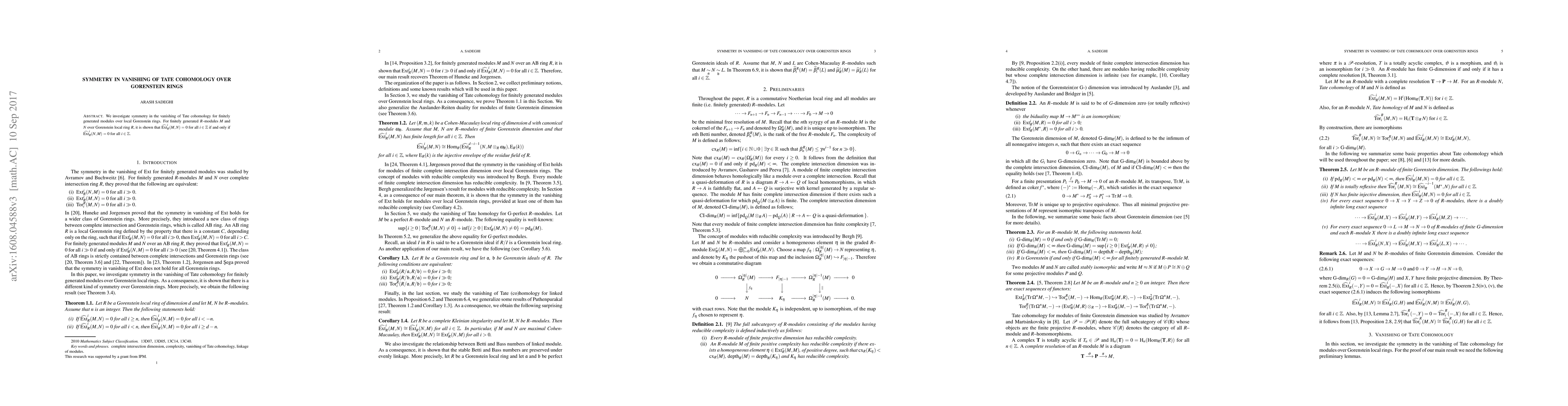 This paper demonstrates that for finitely generated modules over a local Gorenstein ring, the vanishing of Tate cohomology in one direction implies its vanishing in the opposite direction, establishing symmetry in the vanishing property.
