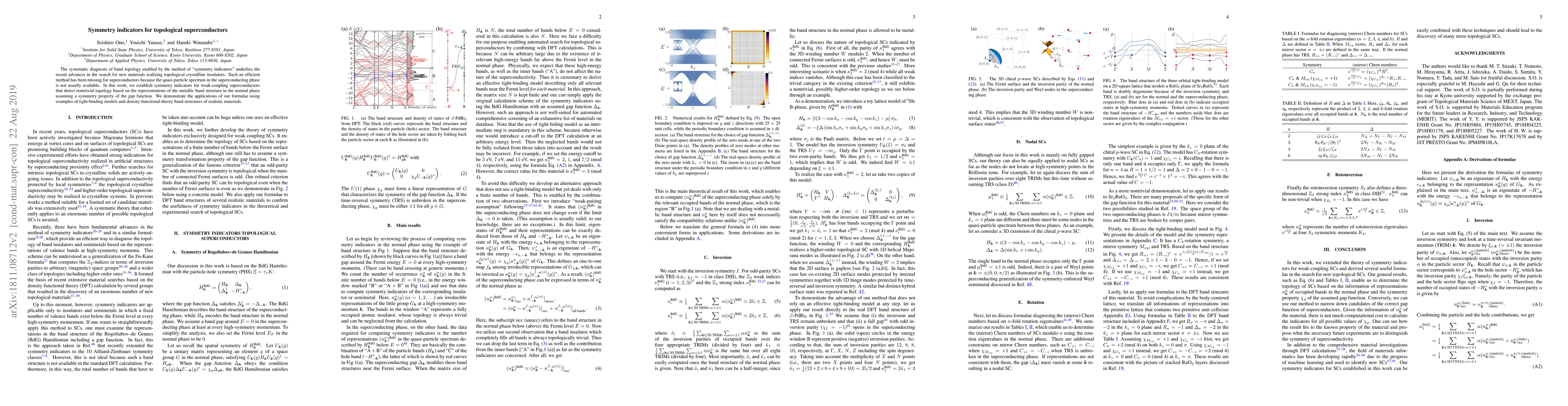 This paper introduces symmetry indicators for identifying nontrivial topological properties in weak-coupling superconductors, using the metallic band structure from the normal phase. The proposed method detects topological features without requiring the band structure in the superconducting phase.