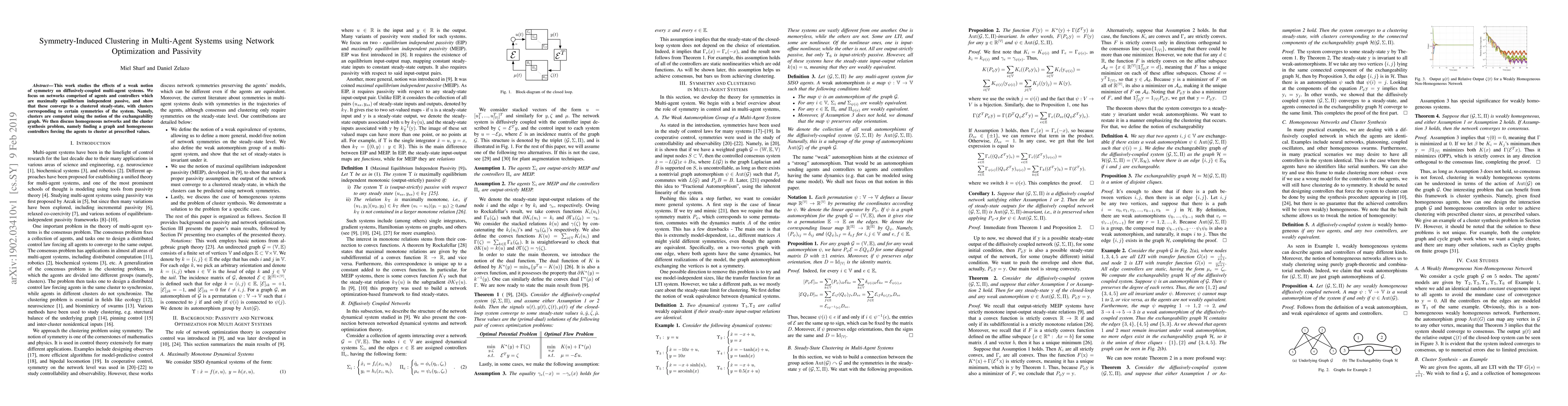 This work studies the effects of a weak notion of symmetry on diffusively-coupled multi-agent systems. We focus on networks comprised of agents and controllers which are maximally equilibrium independent passive, and show that these converge to a clustered steady-state, with clusters corresponding to certain symmetries of the system. Namely, clusters are computed using the notion of the exchangeability graph. We then discuss homogeneous networks and the cluster synthesis problem, namely finding a graph and homogeneous controllers forcing the agents to cluster at prescribed values.