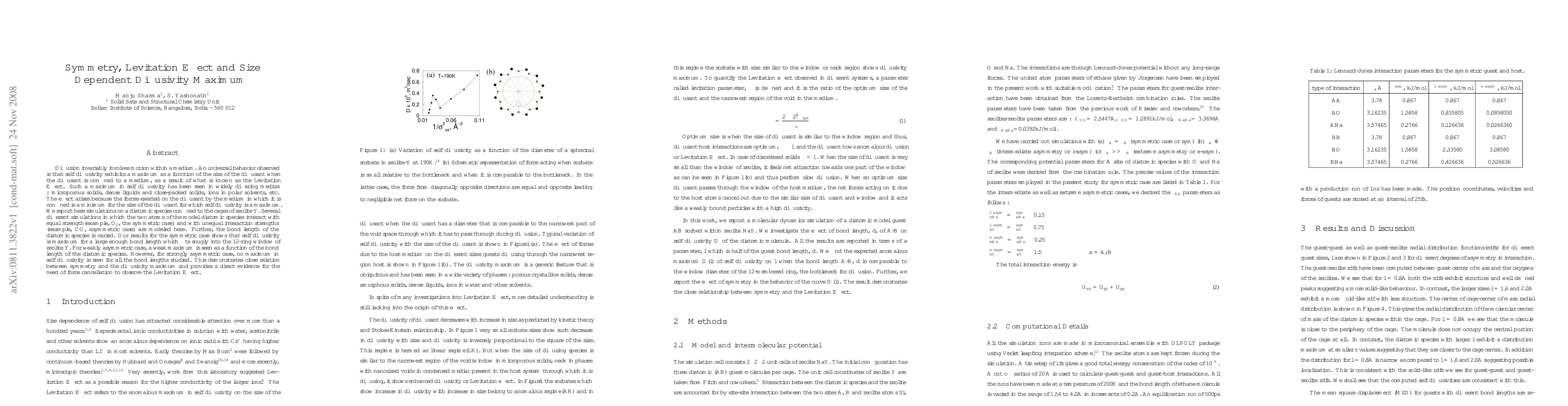 Diffusion invariably involves motion within a medium. An universal behavior observed is that self diffusivity exhibits a maximum as a function of the size of the diffusant when the diffusant is confined to a medium, as a result of what is known as the Levitation Effect. Such a maximum in self diffusivity has been seen in widely differing medium : microporous solids, dense liquids and close-packed solids, ions in polar solvents, etc. The effect arises because the forces exerted on the diffusant by the medium in which it is confined is a minimum for the size of the diffusant for which self diffusivity is a maximum. We report here simulations on a diatomic species confined to the cages of zeolite Y. Several different simulations in which the two atoms of the model diatomic species interact with equal strength(example, $O_2$, the symmetric case) and with unequal interaction strengths (example, $CO$, asymmetric case) are modeled here. Further, the bond length of the diatomic species is varied. Our results for the symmetric case shows that self diffusivity is maximum for a large enough bond length which fits snugly into the 12-ring window of zeolite Y. For weakly asymmetric case, a weak maximum is seen as a function of the bond length of the diatomic species. However, for strongly asymmetric case, no maximum in self diffusivity is seen for all the bond lengths studied. This demonstrates close relation between symmetry and the diffusivity maximum and provides a direct evidence for the need of force cancellation to observe the Levitation Effect.
