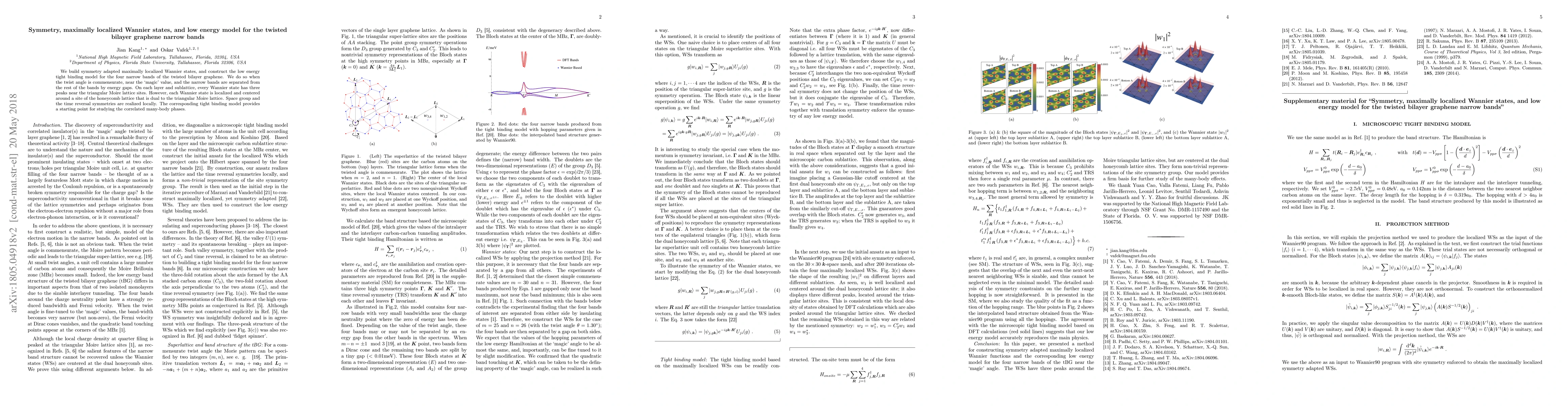 This paper constructs symmetry-adapted maximally localized Wannier states for the narrow bands of twisted bilayer graphene near the "magic" angle, revealing their localization around dual honeycomb lattice sites. The derived low-energy tight-binding model serves as a foundation for exploring correlated many-body phases.