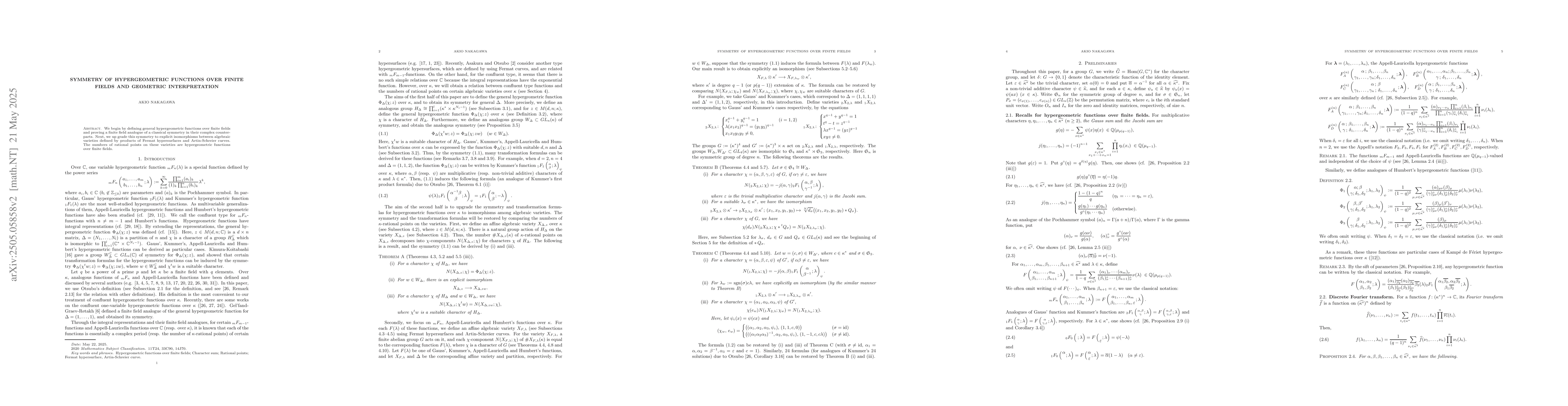 Researchers prove a symmetry of hypergeometric functions over finite fields, linking it to algebraic varieties with rational points that can be counted using these functions, providing new insights into number theory and geometry.