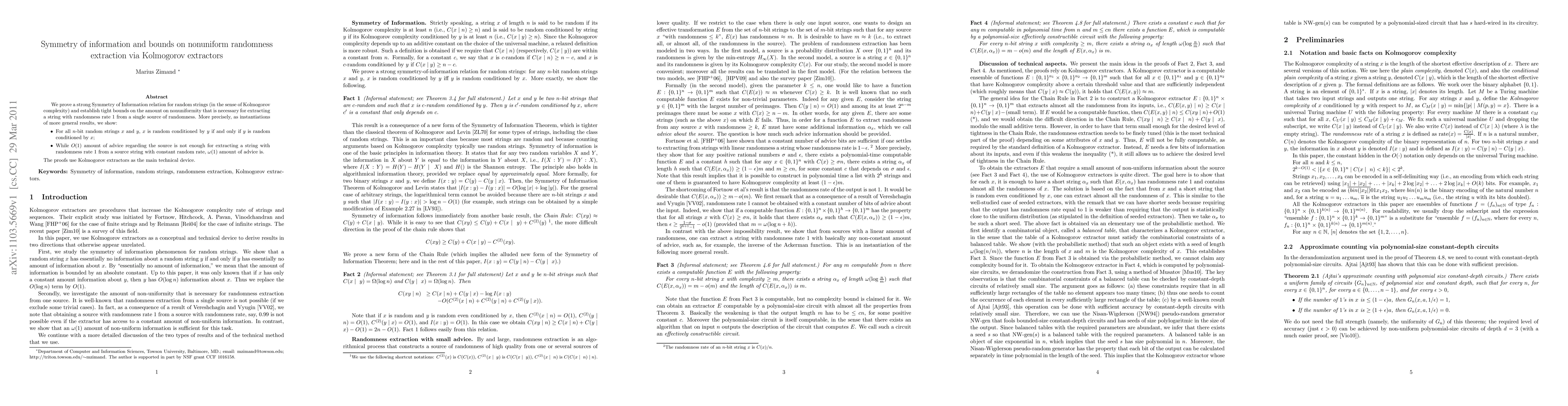 This paper establishes a strong Symmetry of Information theorem for random strings and provides tight bounds on nonuniform randomness extraction using Kolmogorov extractors. It demonstrates that O(1) advice is insufficient but \omega(1) advice is necessary for extracting a string with randomness rate 1 from a source with constant random rate.