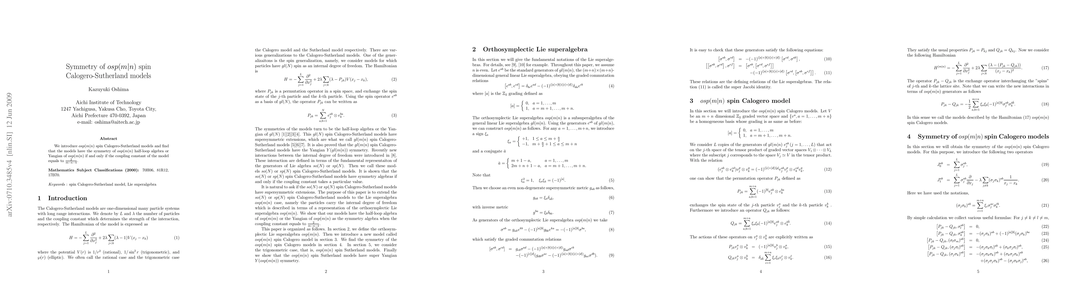 The research introduces osp(m|n) spin Calogero-Sutherland models, revealing they exhibit osp(m|n) symmetry when the coupling constant is 2/(m-n-4). This symmetry is linked to the half-loop algebra or Yangian of osp(m|n).