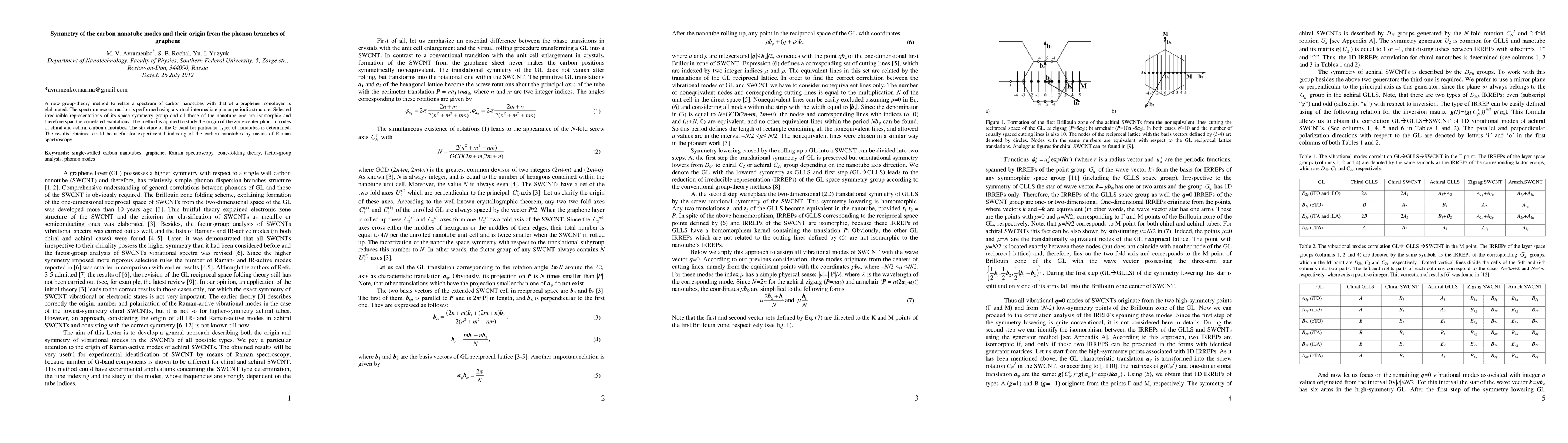 A new group-theory method to relate a spectrum of carbon nanotubes with that of a graphene monolayer is elaborated. The spectrum reconstruction is performed using a virtual intermediate planar periodic structure. Selected irreducible representations of its space symmetry group and all those of the nanotube one are isomorphic and therefore span the correlated excitations. The method is applied to study the origin of the zone-center phonon modes of chiral and achiral carbon nanotubes. The structure of the G-band for particular types of nanotubes is determined. The results obtained could be useful for experimental indexing of the carbon nanotubes by means of Raman spectroscopy.