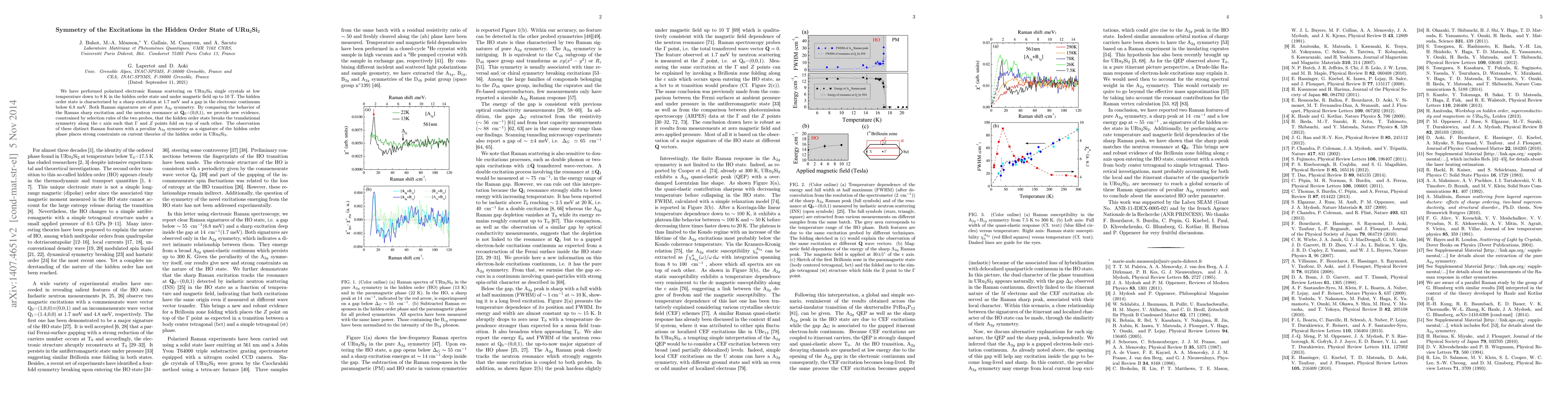 The study reveals that the hidden order state in URu2Si2 exhibits pure A2g symmetry excitations observed via polarized Raman scattering, providing evidence that this state breaks translational symmetry along the c axis. These findings challenge existing theories regarding the hidden order in URu2Si2.