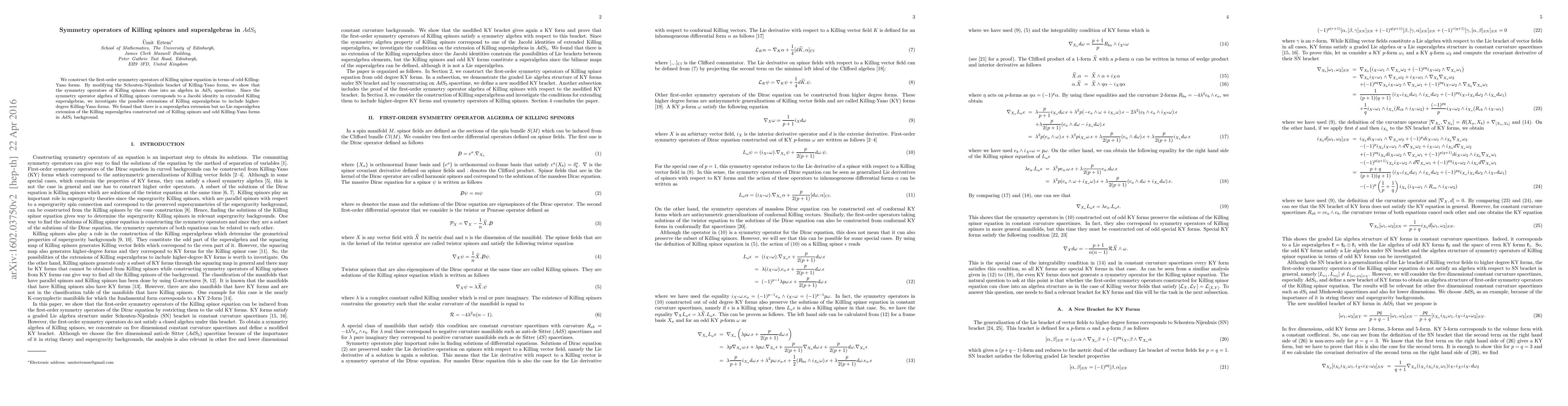 This paper constructs first-order symmetry operators for Killing spinors in AdS_5 using odd Killing-Yano forms, demonstrating that these operators form an algebra that corresponds to a Jacobi identity in extended Killing superalgebras. It finds a superalgebra extension but no Lie superalgebra extension for the Killing superalgebra in this context.