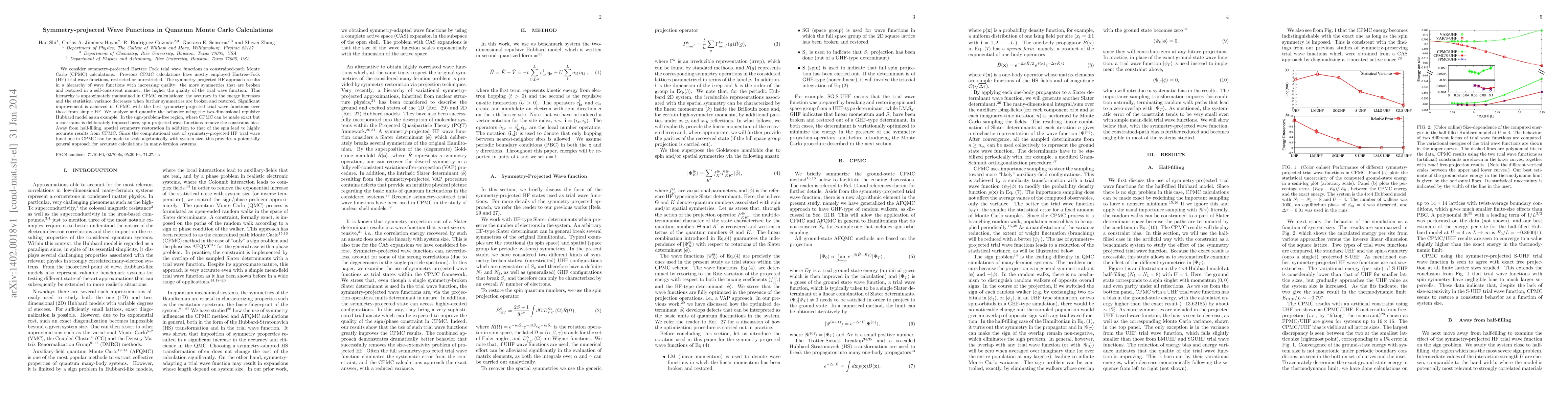 This paper explores the use of symmetry-projected Hartree-Fock wave functions in constrained-path Monte Carlo calculations, demonstrating significant improvements in accuracy and reduced variance compared to traditional methods. The approach scales well with system size, offering a promising technique for many-fermion systems.