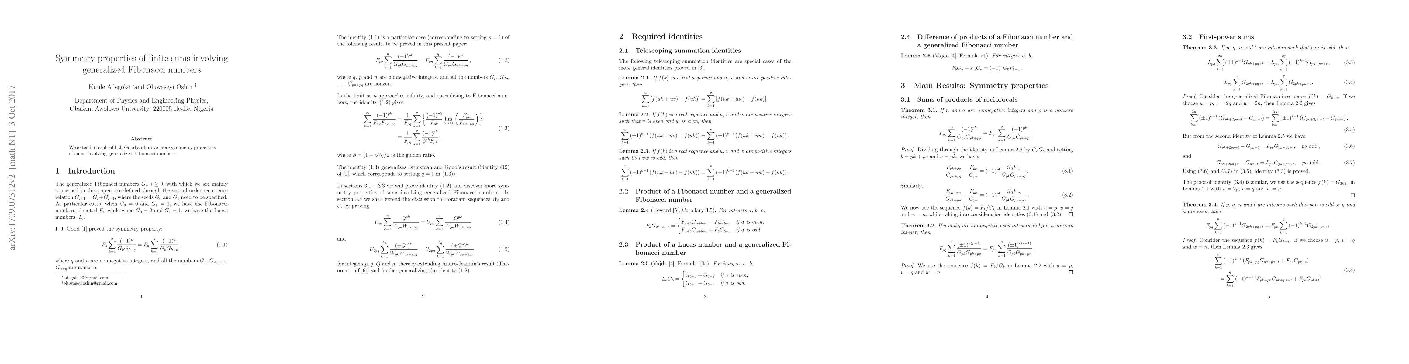 Summary: This paper extends the work of I. J. Good to demonstrate additional symmetrical properties of finite sums that incorporate generalized Fibonacci numbers, enhancing the understanding of their mathematical structure.