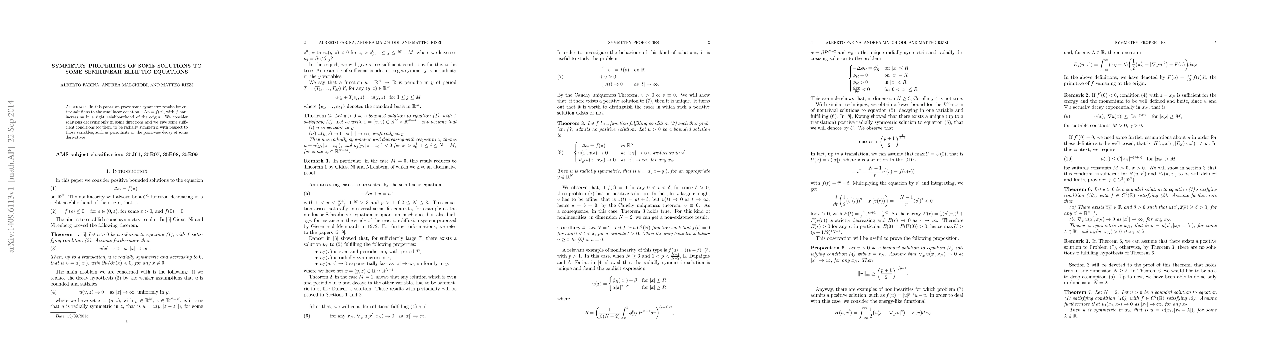 This paper proves symmetry results for entire solutions to a semilinear elliptic equation under certain conditions, such as periodicity or pointwise decay of derivatives.
