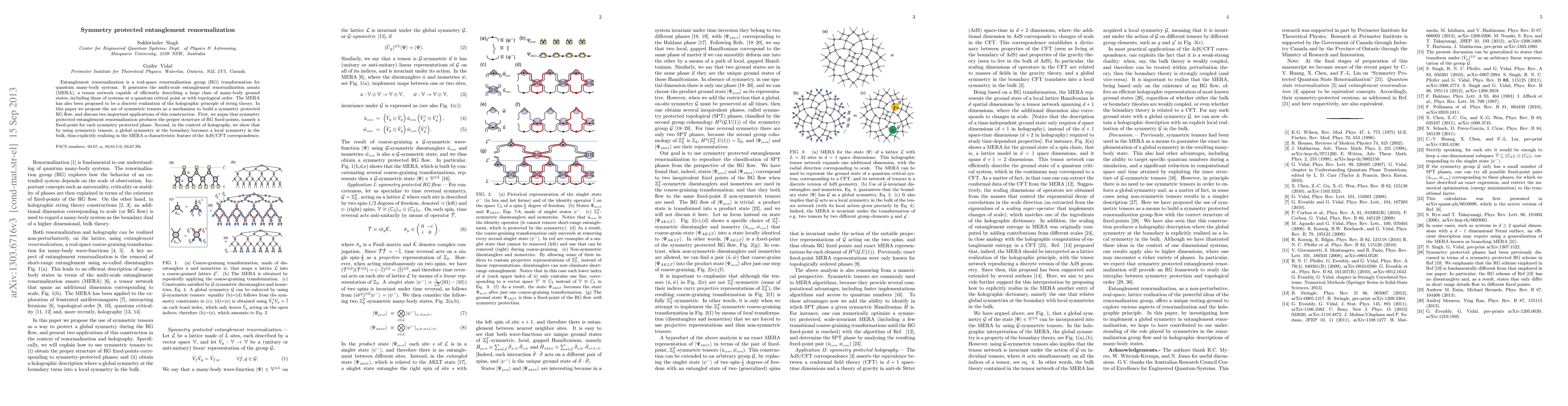 This paper proposes using symmetric tensors in entanglement renormalization to create a symmetry-protected RG flow, ensuring proper RG fixed-points for each symmetry-protected phase. It also demonstrates how this approach realizes the AdS/CFT correspondence's feature of global boundary symmetries becoming local symmetries in the bulk.