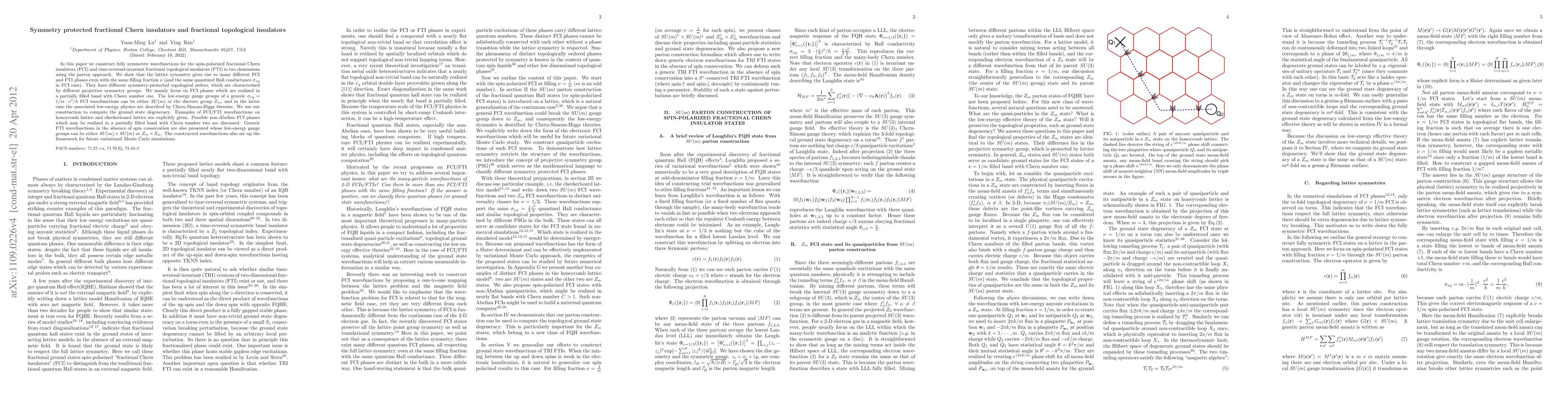 This paper constructs symmetric wavefunctions for fractional Chern insulators (FCI) and fractional topological insulators (FTI) in two dimensions using the parton approach, revealing diverse FCI and FTI phases with different symmetry-protected topological orders. The study focuses on FCI phases in partially filled bands, discussing the low-energy gauge groups and ground state degeneracy, and provides explicit examples on honeycomb and checkerboard lattices.