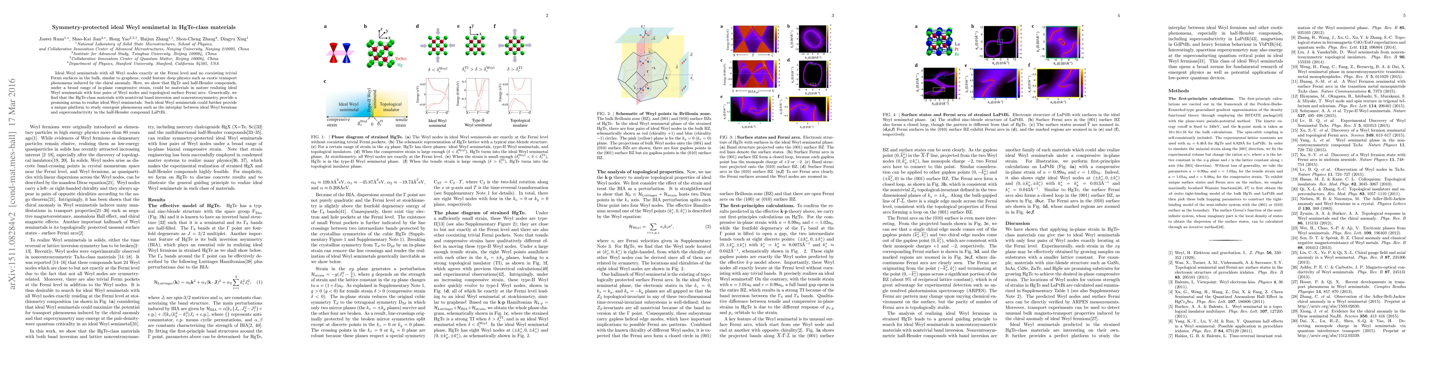 This paper demonstrates that HgTe and half-Heusler compounds can function as ideal Weyl semimetals under compressive strain, featuring four pairs of Weyl nodes at the Fermi level and topological surface Fermi arcs. These materials offer a promising platform to explore unique phenomena such as the interaction between Weyl fermions and superconductivity.