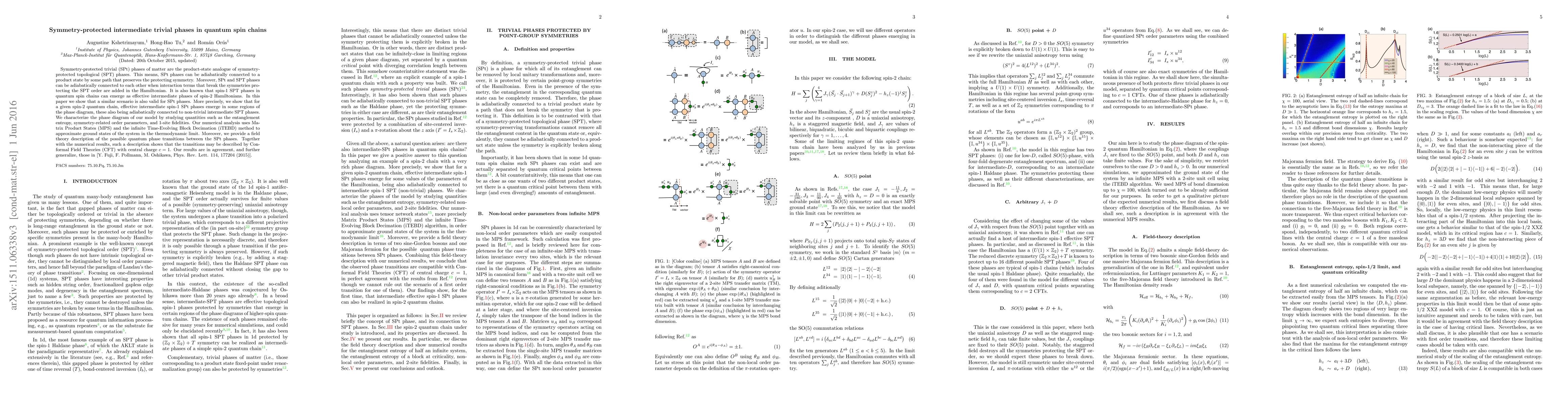 This paper investigates symmetry-protected trivial (SPt) phases in quantum spin chains, revealing that spin-1 SPt phases can emerge as effective intermediate phases in spin-2 quantum chains. The study uses numerical methods and field theory to characterize the phase diagram and shows that these transitions may be described by Conformal Field Theories with central charge c=1.