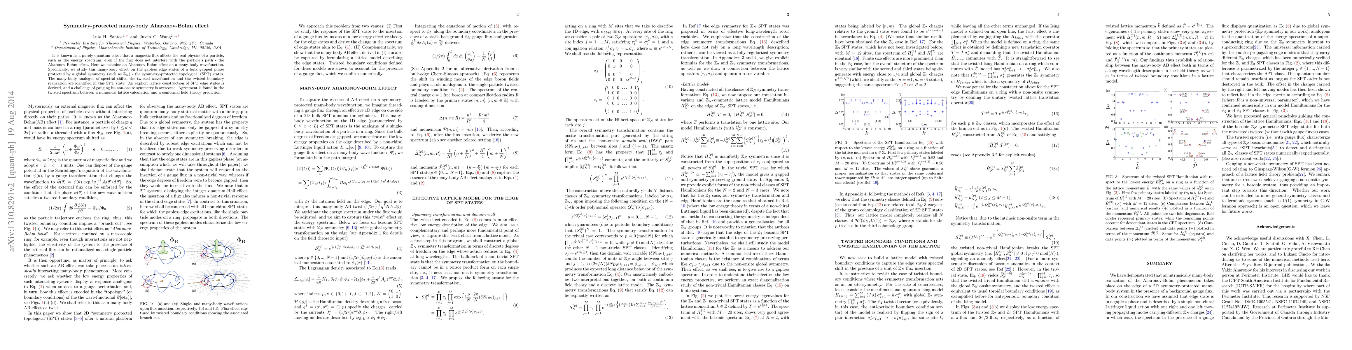 This paper explores a many-body version of the Aharonov-Bohm effect in symmetry-protected topological (SPT) states, identifying twisted wavefunctions and demonstrating lattice constructions. It successfully gauges non-onsite symmetries and finds agreement between numerical and theoretical predictions.