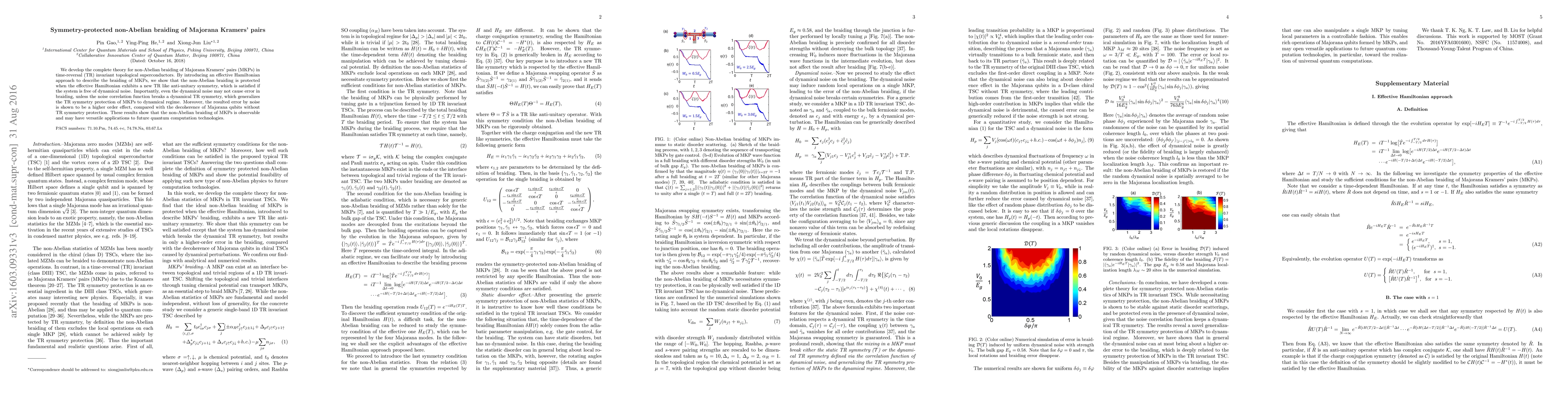 This paper develops a comprehensive theory for non-Abelian braiding of Majorana Kramers' pairs in topological superconductors, demonstrating protection against errors even under dynamical noise, as long as a TR-like anti-unitary symmetry is maintained. It suggests significant potential for future quantum computing applications.