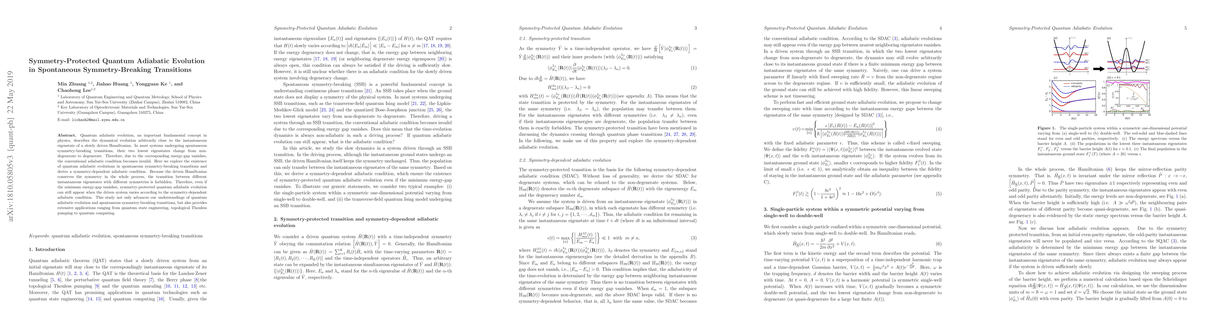 The paper introduces a symmetry-dependent adiabatic condition (SDAC) to guide the adiabatic evolution in quantum systems undergoing spontaneous symmetry breaking, even when energy gaps vanish.